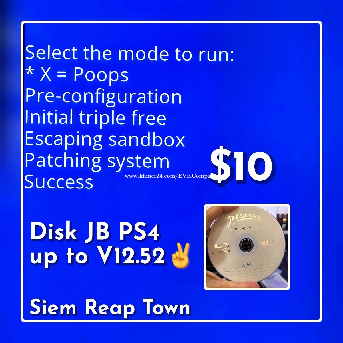 Disk សម្រាប់ JB PS4 បានដល់ version 12.52 $10 ទីតាំងសៀមរាប 📱 012 737 963 Telegram: t.me/EVK_Computer