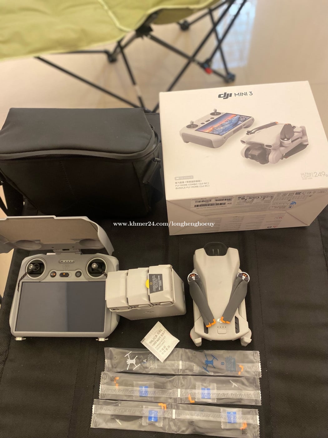 DJI Mini 3 fly combo ធានាស្អាតដូចថ្មីម្ចាស់លក់ចង់ឡើងសេរី នៅ warranty 6ខែពីក្រុមហ៊ុន - Drone DJI mini3 - RC DJI Smart controller - Battery 3 គ្រប់ - Charger 1 - ស្លាប drone 3 ឈុត - កាបូប 1 - Case ការពារ RC ទាក់ទង 010203xxxClick To Call