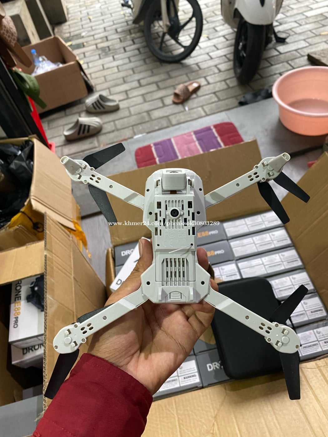 Drone E88 Pro តម្លៃត្រឹមតែ 15$ ទទួលបាន ថ្មរ 2គ្រាប់ កាមេរា 2គ្រាប់ Free ដឹកជញ្ជូន