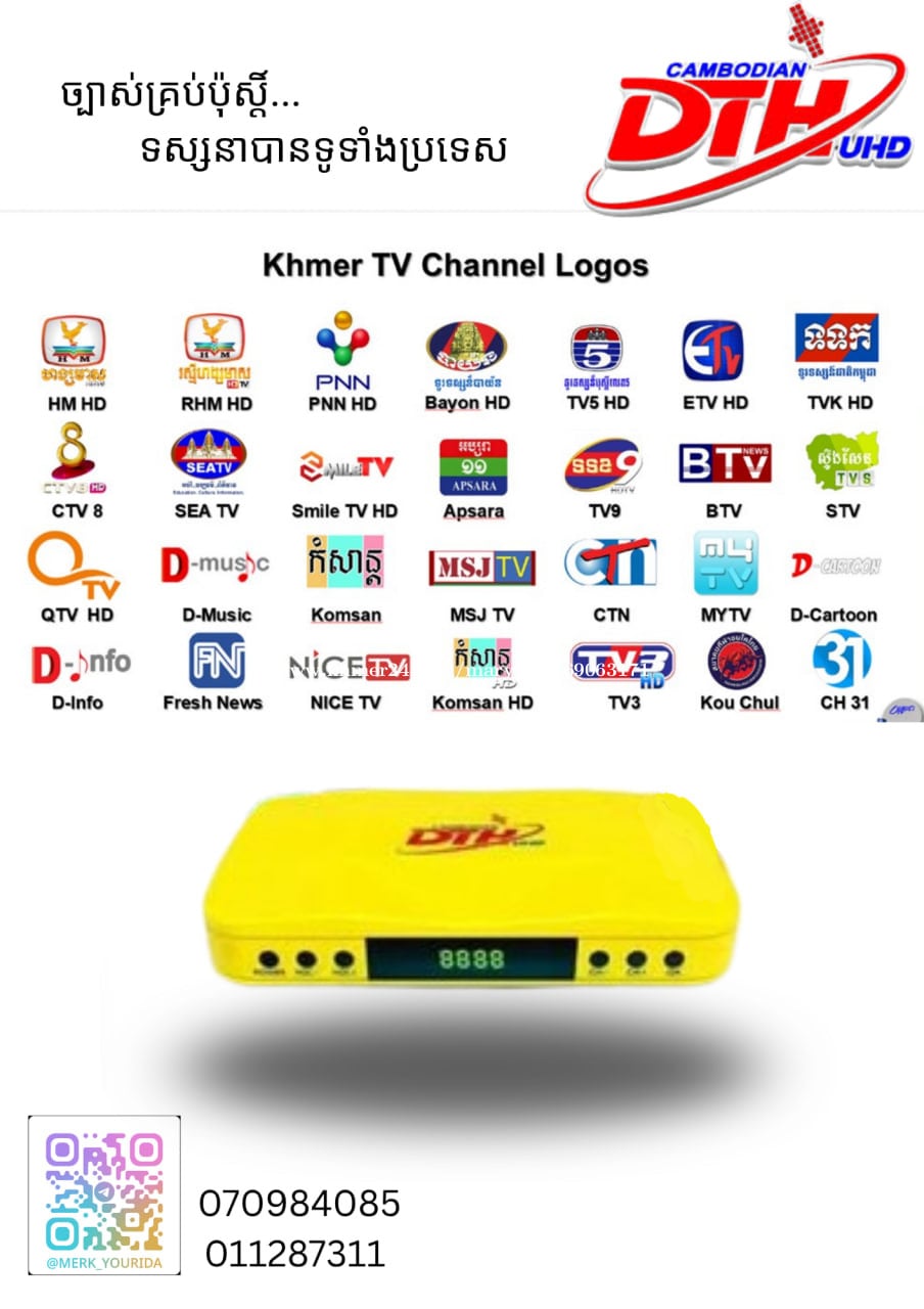 👉DTH តេជោមើលបានជាង 200 ប៉ុស្តិ៍ 👉ប្រើប្រាស់មិនចាំបាច់បង់សេវាជារៀងរាល់ខែ 👉រីករាយទស្សនា កីឡា គំនូជីវចរ ពត័មាន ស្តាប់ចំរៀង ភាពយន្តល្បីល្បីដោយសេរី ________________________________________ ☎️ទំនាក់ទំនងជាវផលិតផល: 👉ចុចចូល Telegram: @merk_yourida ☎️ 070984xxxClick To Call ☎️ 011287xxxClick To Call #ផ្ទះលេខ 20N ផ្លូវលេខ K4B សង្កាត់ទឹកថ្លា ខណ្ឌសែនសុខ ភ្នំពេញ. 🗺#ប្រាប់ពីទីតាំង:goo.gl/maps/2ZAZ6Bb6P6jPUS588