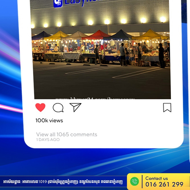 ✨ Easyhome មានដំណឹងថ្មីមកប្រាប់បងប្អូនទាំងអស់គ្នា! ✨ 🌙 សម្រាប់ អ្នកចុះឈ្មោះ 15 នាក់ដំបូង 👉 ចង់បើកលក់ក្នុង គម្រោងផ្សាររាត្រី Easyhome 💥 Free ថ្លៃជួល 3 ខែដំបូង (ឥតគិតថ្លៃ!) 👌 សមស្របខ្លាំងសម្រាប់ • អ្នកចង់សាកល្បងអាជីវកម្មដំបូង • អ្នកចង់លក់ម្ហូប អាហាររាត្រី ភេសជ្ជៈ ជាដើម 🎉 ខាងផ្សារមានរៀបចំកម្មវិធីជាច្រើនដូចជា • ប្រគំតន្ត្រី 🎶 • លេងហ្គេមយករង្វាន់ 🎮 • សកម្មភាពកម្សាន្តផ្សេងៗ 👉 ជួយបង្កើនបរិយាកាសអ៊ូអរ និងជំរុញការលក់ឲ្យកាន់តែល្អ! 🅿️ ពិសេស! 👉 ចំណតរថយន្តក៏ Free ដែរ ងាយស្រួលចេញចូល 👍 🔥 ឱកាសល្អមិនមកញឹកញាប់ទេ 📩 ចាប់អារម្មណ៍ Inbox / Chat មកសួរព័ត៌មានបានភ្លាមៗ!