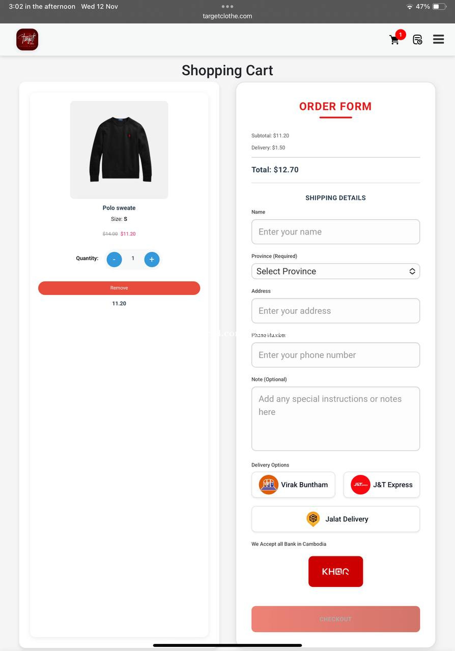 ខ្ញុំសូមចែករំលែកគម្រោង Website E-Commerce របស់ខ្ញុំ! នេះជាគម្រោងថ្មីមួយដែលខ្ញុំបានបង្កើតឡើងដោយខ្លួនឯង — វេបសាយ E-Commerce ពេញលេញ (Full-Stack) ដែលអាចទិញទំនិញ និងបង់ប្រាក់តាម KHQR បានយ៉ាងងាយស្រួល។ 🇰🇭💳 💡 លក្ខណៈពិសេស៖ 🛍️ ប្រព័ន្ធគ្រប់គ្រងផលិតផល 💳 បង់ប្រាក់តាម KHQR 📦 តាមដានការបញ្ជាទិញ 👥 ផ្ទាំងអ្នកប្រើ និងអ្នកគ្រប់គ្រង ⚡ រចនាបែបទំនើប លឿន និងងាយស្រួលប្រើ គម្រោងនេះបង្ហាញពីចំណង់ចំណូលចិត្តរបស់ខ្ញុំចំពោះការបង្កើតបច្ចេកវិទ្យា Web ទំនើប សម្រាប់អាជីវកម្មនៅកម្ពុជា។ 🇰🇭 បើអ្នកចង់ឃើញ Demo ឬចង់បង្កើតប្រព័ន្ធស្រដៀងគ្នា សូមទាក់ទងមកខ្ញុំបានផងដែរ។ 🙌