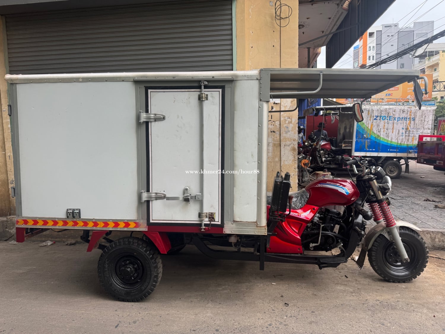 ម៉ូតូកង់បីទូប្រអប់មួយតឹក - ខ្នាតទ្រុង ប2.20xទ1.35xកំ1.20 - ម៉ាសុិនកំលាំង 200cc - ទំងន់ដឹក 1.5តោន តំលៃ 1650$ - ធានាម៉ាសុិន ប៉ុង រយះពេលមួយខែ