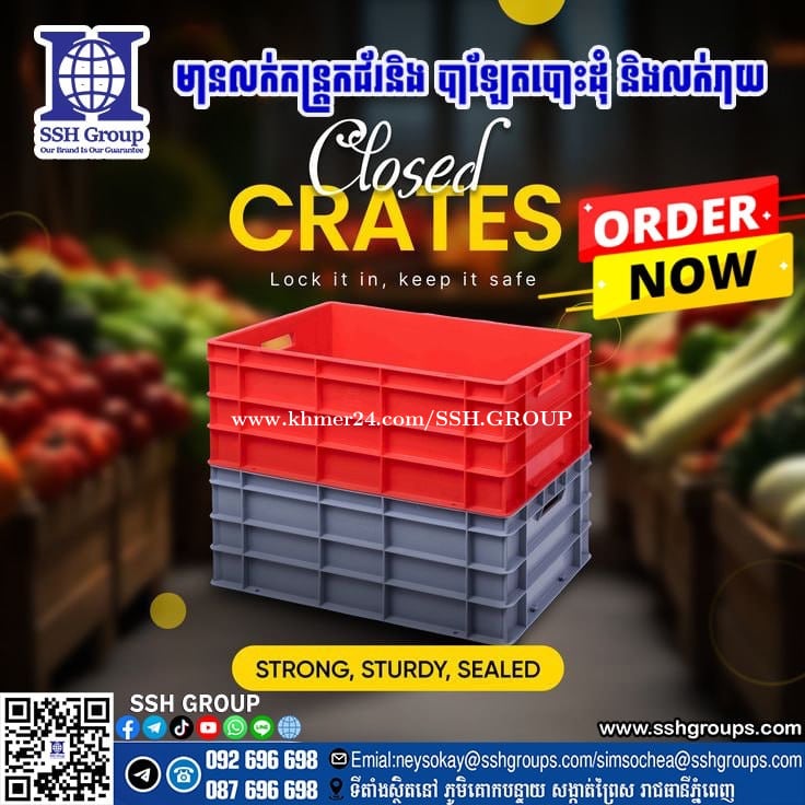 SSH Groupយើងខ្ញុំមានលក់និងផ្គត់ផ្គង់គ្រឿងជ័រគ្រប់ប្រភេទ ដូចជា កន្ត្រកជ័រ សំរាប់ដាក់ បន្លែ ផ្លែឈើ ត្រី សាច់ តាម ផ្សារទំនើប ឃ្លាំង រោងចក្រកាត់ដេរ រោងចក្រស្វាយ រឺ កសិផលផ្សេងៗរបស់បងប្អូនតាមតំរូវការ។ ស្តុកមានច្រើនមិនបាច់រង់ចាំយូរ 👉មានច្រើនខ្នាត 👉មានច្រើនទំហំ ទៅតាមតម្រូវការ ☑️មានលក់ដុំនិងរាយ បើបងប្អូនអតិថិជនមានចំណាប់អារម្មណ៍សូមទំនាក់ទំនងមកលេខទូរស័ព្ទដូចខាងក្រោម: 📩ឆាតសួរ (Chats To Seller ) (https://t.me/sshgroup168) 📞092696xxxClick To Call ( Cellcard ) 📞016859xxxClick To Call( Smart ) 🚚មានសេវាដឹកជញ្ចូន25ខេត្ត ក្រុង 🙏សូមអរគុណ🙏💞