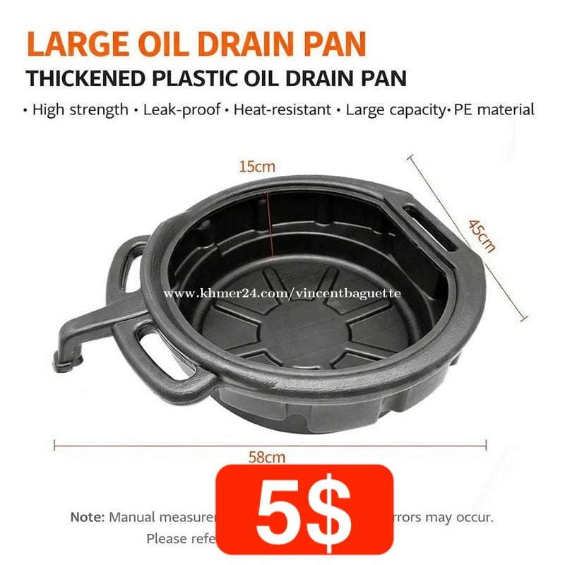 កាដុងបង្ហូរប្រេងម៉ាស៊ីន មានមាត់ងាយចាក់ (Oil Drain Pan with Spout) 🛢️ ថាសទទួលប្រេងម៉ាស៊ីន សម្រាប់ប្តូរប្រេងឡាន ឬម៉ូតូនៅផ្ទះដោយខ្លួនឯង។ រចនាមាន ច្រកចាក់ (Spout) ជួយអោយចាក់ប្រេងចាស់ចូលក្នុង កាដុង ឬបំពង់បានងាយ មិនហូរ មិនកខ្វក់។ ✅ លក្ខណៈពិសេស - មានមានមាត់ពុយ ងាយចាក់ប្រេងចាស់ចូលកាដុងសម្រាប់ទុក - មិនហូរកខ្វក់ប្រេងពេញដី - ទំហំសមស្រប ចំណុះ 10L 🛠️ ប្រើសម្រាប់បង្ហូរប្រេងម៉ាស៊ីនពេលប្តូរប្រេង ចាក់ប្រេងចាស់ចូលកាដុងចាស់ ដើម្បីយកទៅចោលឬលក់ 📦 ជ័ររឹង ប្រើបានយូរ