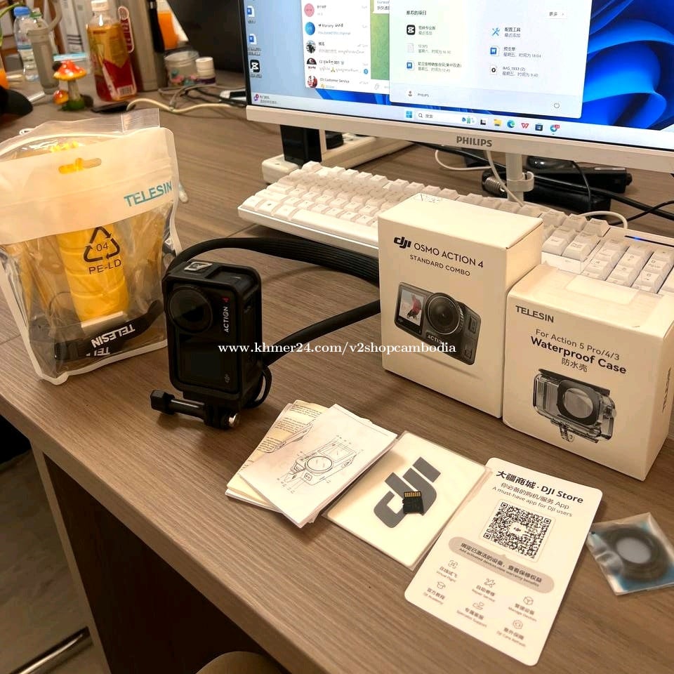១ ឈុត កាម៉េរា Action 4 - ស្រោម Telesin ( 30ជាងដុល្លារ) - ឈុតពាក់សម្រាប់ថត ជាប់នឹងក