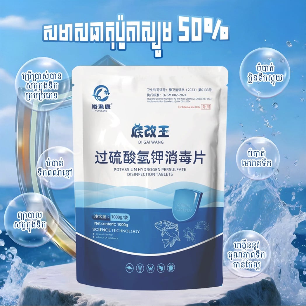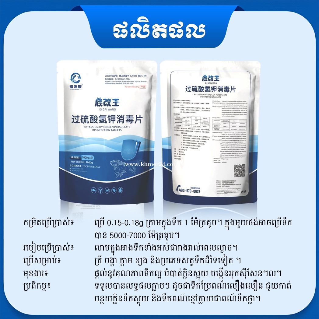 បាស៊ីលសមាសធាតុ កម្រិតប្រើប្រាស់៖ សូមប្រើផលិតផលនេះក្នុងអត្រា 0.375–0.5 មីលីលីត្រ ក្នុងទឹក 1 ម៉ែត្រគូប។ ក្នុងមួយដប ប្រើបានសម្រាប់ទឹក 4,000–6,000 ម៉ែត្រគូប។ សម្រាប់ការលាយចំណីសូមប្រើ 2 លីត្រ (មួយដប) សម្រាប់ 150 គីឡូក្រាម។ របៀបប្រើប្រាស់៖ លាបក្នុងអាងទឹកទាំងអស់ជារាងរាល់ព្រឹក។ ប្រើប្រាស់នៅកន្លែង៖ ទឹកទន្លេ និងទឹកសាបគ្រប់ប្រភេទ។ ប្រតិកម្មជាក់ស្តែង៖ ធ្វើអោយគុណភាពទឹកល្អ រំលាយចំណីនៅសល់ កាត់បន្ថយក្លិន និងជំរុញការរំលាយ បង្កើនការបំប្លែងចំណី។ ប្រើប្រាស់បានសម្រាប់៖ អាចប្រើសម្រាប់ត្រី បង្គា ក្តាម ខ្យង និងប្រភេទសត្វទឹកដ៏ទៃទៀតទាំងក្នុងទឹកសមុទ្រ និងទឹកសាប។ ប្រតិកម្មជាក់ស្តែង៖ បំបាត់ក្លិនស្អុយនិងប្រែពណ៍ទឹកត្រឹម 72 ម៉ោង។ នៅពេលប្រើរួមគ្នាជាមួយឧបករណ៍អុកស៊ីសែននិងប្រសិទ្ធភាពកាន់តែខ្ពស់។ ការហាមឃាត់៖ កុំប្រើនៅពេលភ្លៀង ពេលរសៀល និងនៅពេលដែលស្រះខ្វះអុកស៊ីសែន (ករណីដាច់ចរន្តអគ្គិសនីអុកស៊ីសែន) ឬនៅពេលដែលត្រីកំពុងហត់ដង្ហើមនៅលើផ្ទៃទឹក។ ហាមប្រើជ្រុលកម្រិត។ ការប្រើប្រាស់អតិបរមា 2 លីត្រ (មួយដប) មិនគួរតិចជាង 1000 ម៉ែត្រការ៉េទេ។