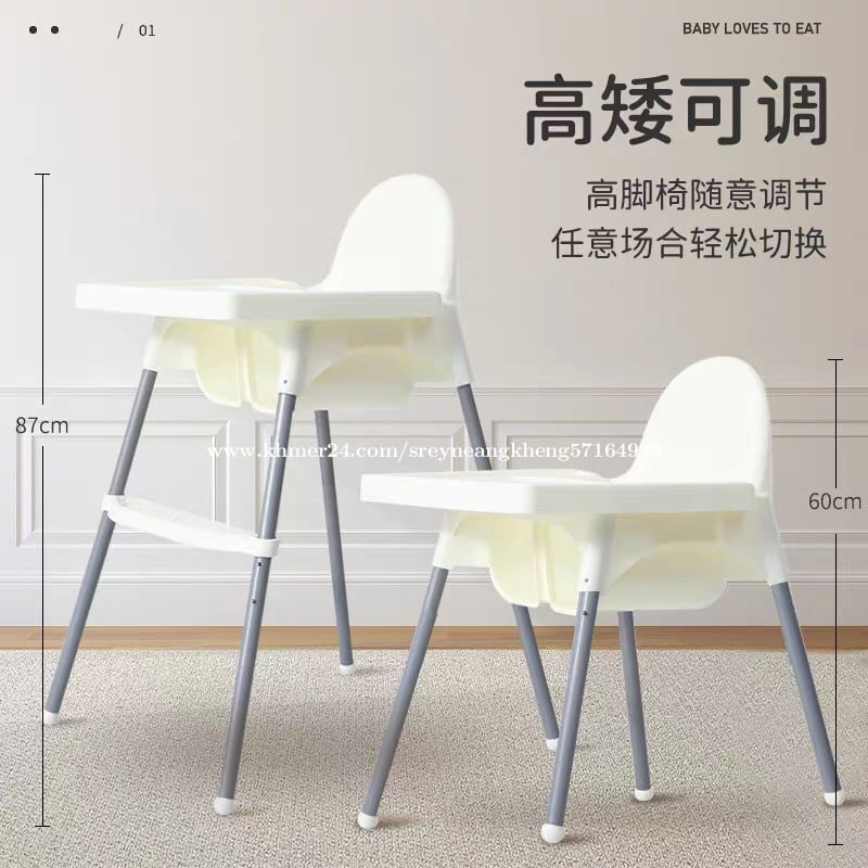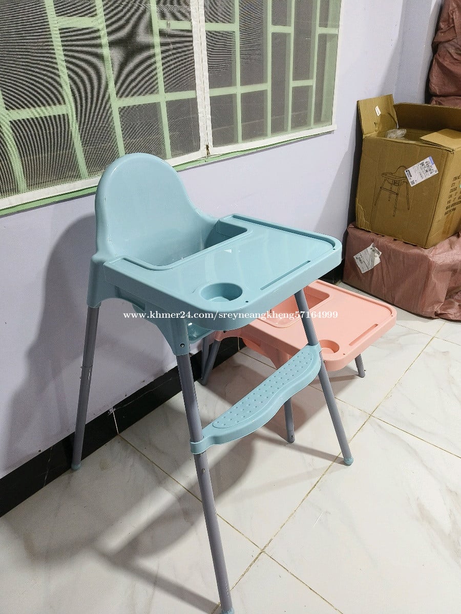 កៅអីញាំបាយកូនក្មេង សេរ៉េខ្ពស់ទាបបាន តុដោះលាងបាន មាន3ពណ៍ ស ឈូក ផ្ទៃមេឃ ប្រើបានចាប់7ខែដល់4-5ឆ្នាំ