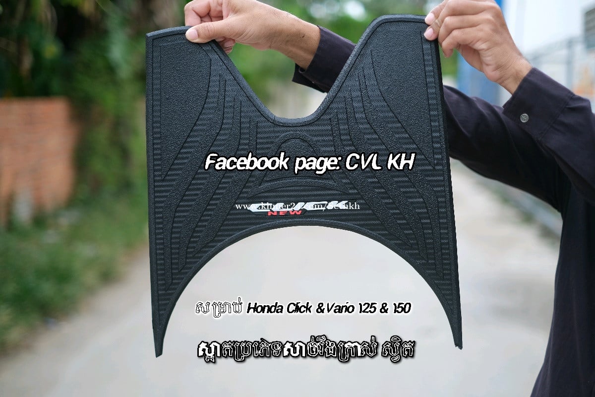 កំរាលជើង Honda Click Vario 160 ប្រភេទសាច់រឹងក្រាស់ មិនបាច់មួលខ្ចៅ មិនហើប មិនមែនទន់ៗដូចកំរាលជើងម៉ូតូធម្មតា ទីតាំងជិតផ្សារឈូកមាស ភ្នំពេញ Facebook page: CVL KH
