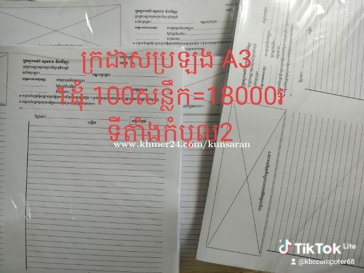 ក្រដាសប្រឡើង A3 ១ដុំ=១០០សន្លឹក 18,000៛