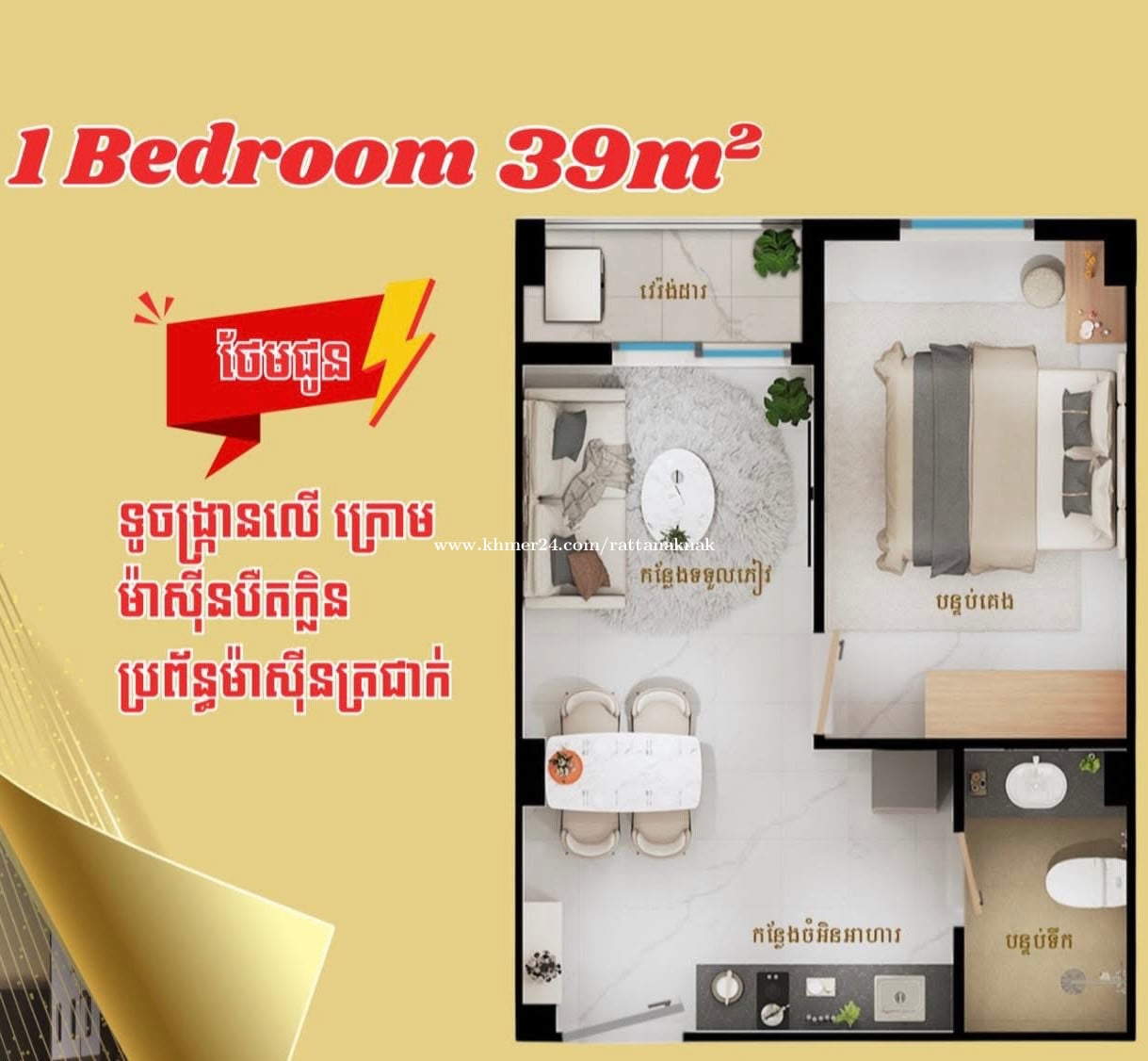 - ខុនដូរថ្មី (ពិភពថ្មីខុនដូសែនសុខ) ទើបសង់រួច អាចចូលនៅភ្លាម ! - ទំហំ: 39 ម៉ែត្រការ៉េ (បន្ទប់គេង ១, បន្ទប់ទទួលភ្ញៀវ ១, ផ្ទះបាយ ១, បន្ទប់ទឹក ១, វេរ៉ង់ដា ១) - ជាន់: បែមុខទៅទិសខាងកើត (អត់ក្តៅ) - ទីតាំង: នៅលើផ្លូវធំ 60m មានផ្សារធំ នៅជិតក្រសួងដែនដី សាលារៀនពាណិជ្ជសាស្ត្រអេស៊ីលីដា នាយកដ្ធាន ប.ស.ស សាលាបច្ចេកទេសធនាគារ ផ្សារទំនើប AEON សែនសុខ - ជាន់ទី 8th, លេខបន្ទប់: 8xx (ហុងស៊ុយ) បញ្ជាក់: ម្ចាស់ផ្ទាល់