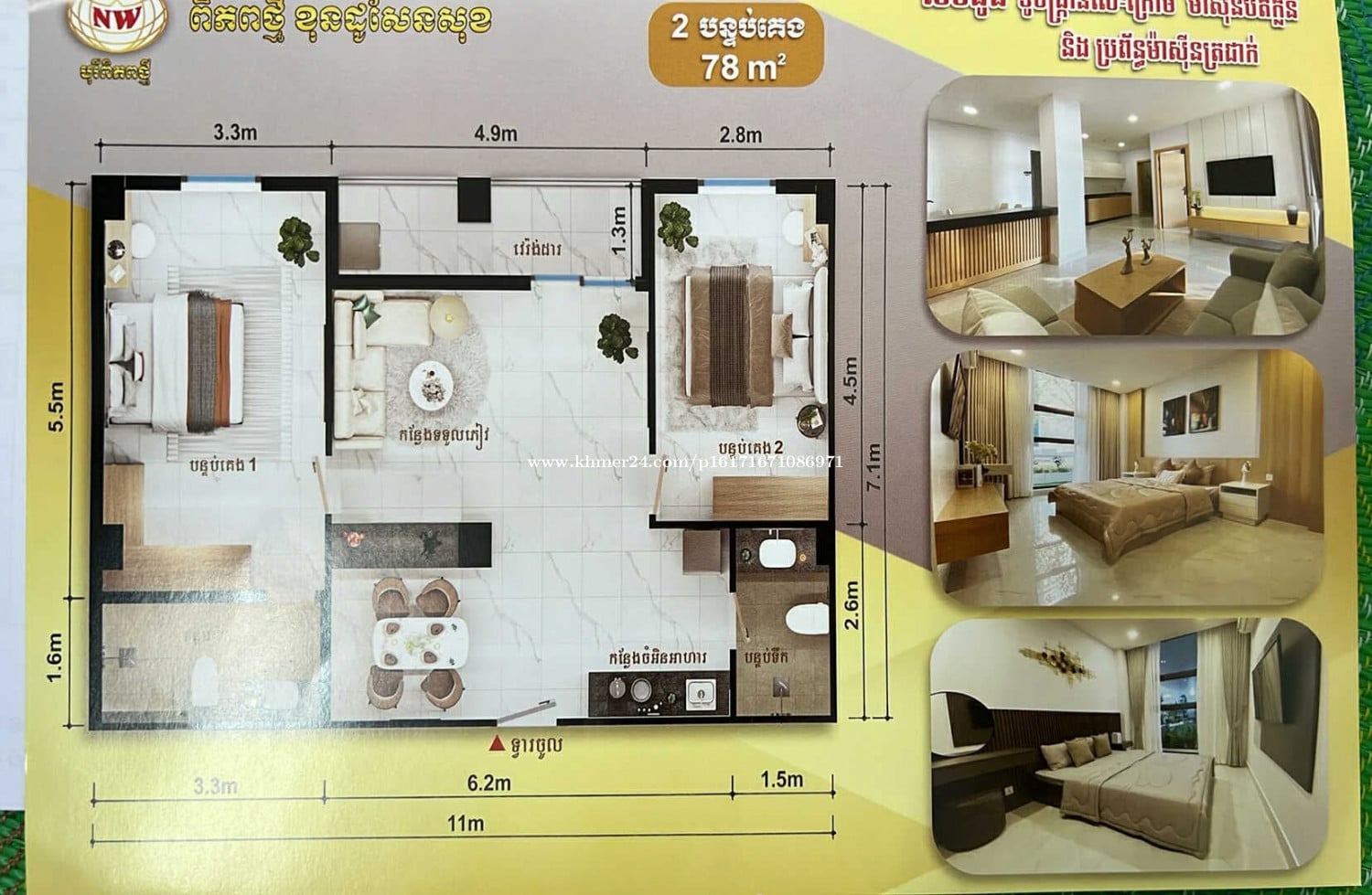 ខុនដូ និង ប្រគលសោខែក្រោយ ខុខដូ នៅជាន់ទី 11 បន្ទប់កែង បែរមុខមកខាងកើត ជាប់ផ្លូវធំ