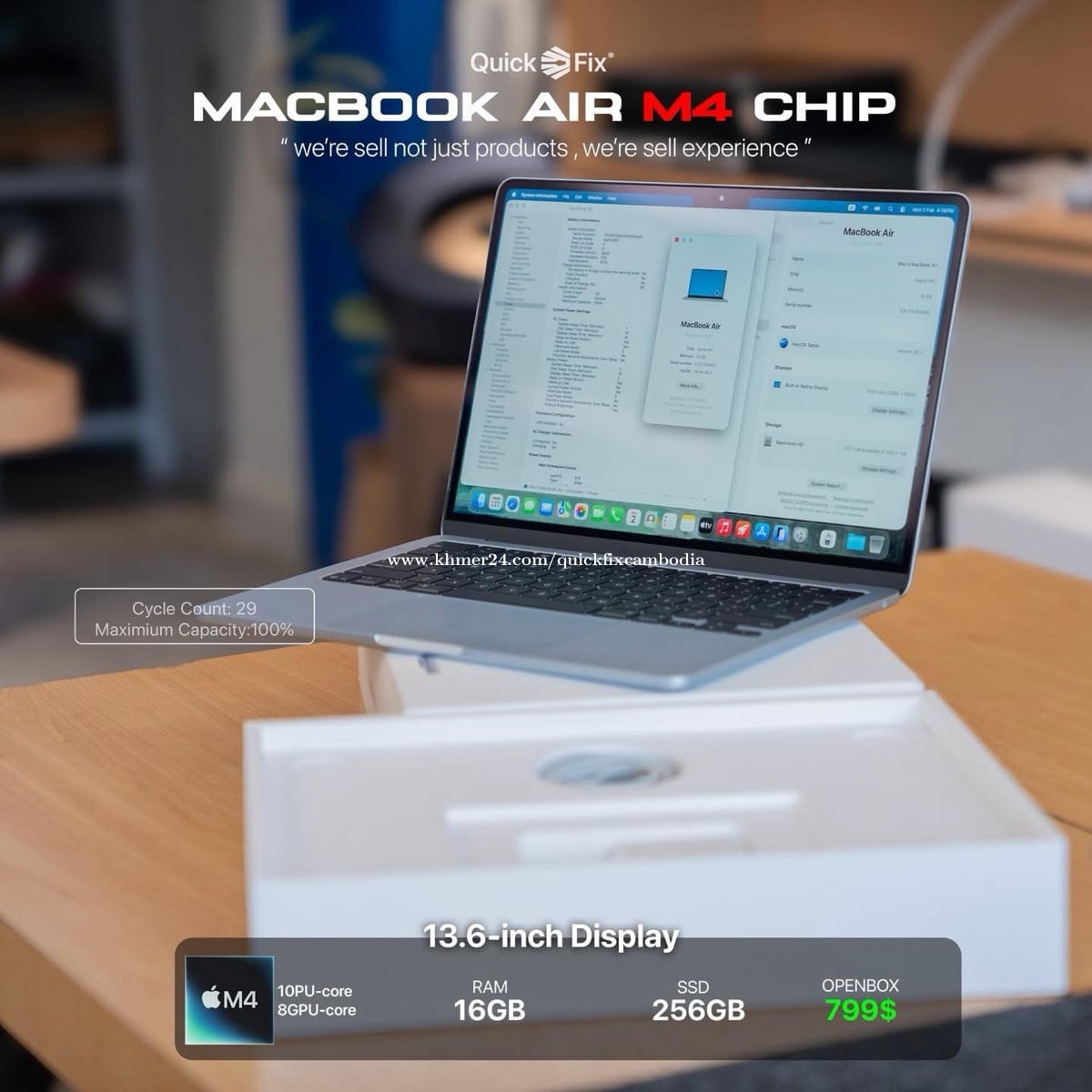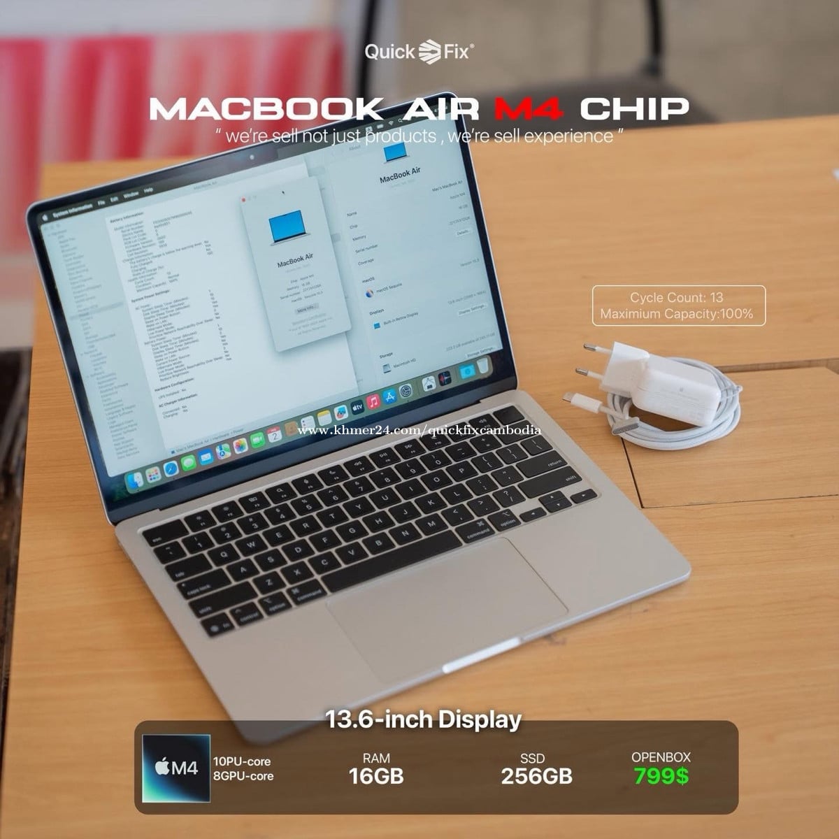 ខ្លឹមមិនងាយមាន MacBook Air M4 USED សាកថ្មរតិចដង 🤫 Midnight 💙 Sky Blue 🩵 Silver 🤍 Conditions 99% ការដូថែមស្រាប់ 4មុខ 👇 • Laptop Sleeve • Screen Guard • Keybaord Guard • USB Hub 8in1 🛡️ 6-months Warranty Hardware & Software Telegram Chanel : https://t.me/quickfixmacbookusa DM now to order – limited units! Contact : https://t.me/quickfixsale ——————— 𝐐𝐮𝐢𝐜𝐤𝐅𝐢𝐱 quickpcfixaz.net 📞 HOTLINE: 0762502xxxClick To Call 🛵 Call ភ្លាមដឹកចេញភ្លាម