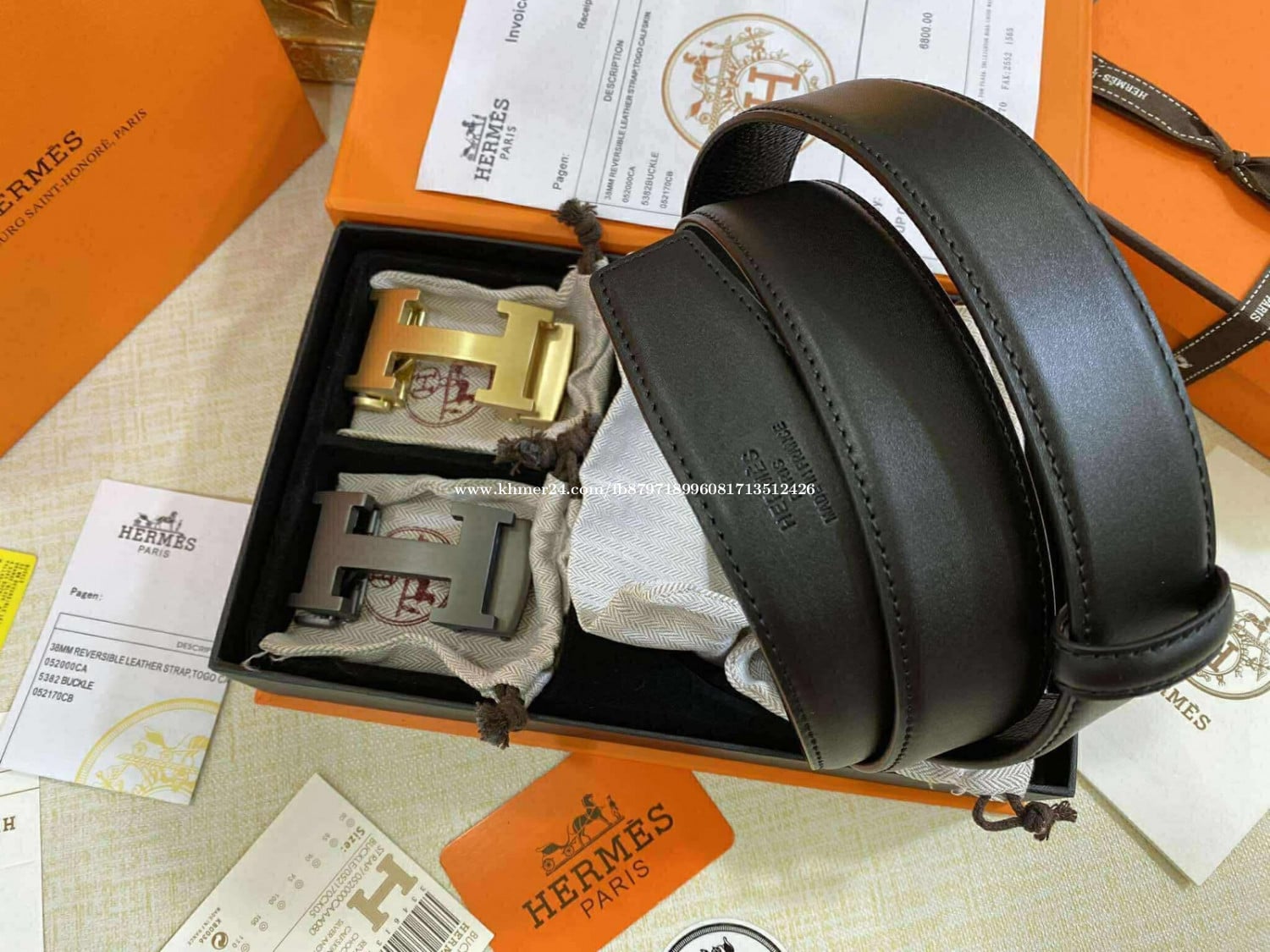 ឈុតខ្សែក្រវាត់ HER MES ក្បាល 2 គុណភាព Leader Top Great ស្បែកឆៅ ក្បាលលោហះ មានប្រអប់ថង់យួរ Full Set តម្លៃ 25$ ស្តុកទេីបចូលថ្មី