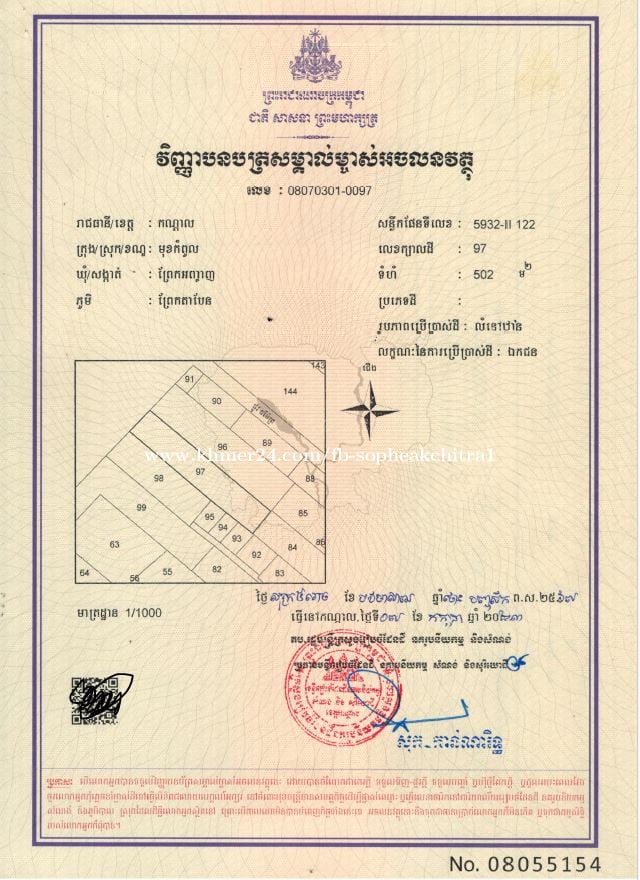 Location: Location Road 6A, next to Bridge No. 12, Phnom Penh-Kandal, just across a bridge Preaek Anhchanh, Mukh Kampul, Kandal