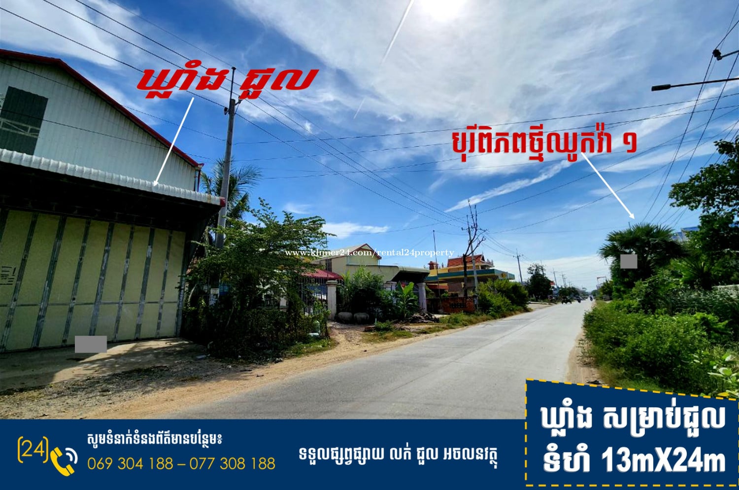 ឃ្លាំង សម្រាប់ជួល !! បុរីពិភពថ្មីឈូកវ៉ា ១ 📍ទីតាំង: នៅក្បែរ បុរីពិភពថ្មីឈូកវ៉ា១ សង្កាត់គោករកា ខណ្ឌេព្រែកព្នៅ - តម្លៃជួល :$500/ខែ - ទំហំឃ្លាំង : 13m x 24m - លក្ខខណ្ឌ អាចចរចាបាន - លេខអាជ្ញាប័ណ្ណ : E-22-404 👉សម្រាប់ព័ត៌មានបន្ថែមសូមទូរស័ព្ទមកលេខ៖ 📲069304xxxClick To Call 📲077308xxxClick To Call