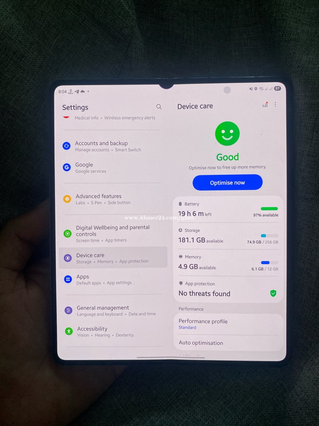 អេក្រង់ក្រៅស្អាត គ្មានស្នាម គ្មានដាន អេក្រង់ក្នុង ជាំបន្តិចដូច បិតបេីកប្រេីបានធម្មតា ស្ទេីរ តួក្រៅ កន្លែងត្រចៀកបិតបេីក ថ្មកាន់ កាមេរ៉ាច្បាស់ ស៊ីម២ 5G មានតែទូរស័ព្ទ។