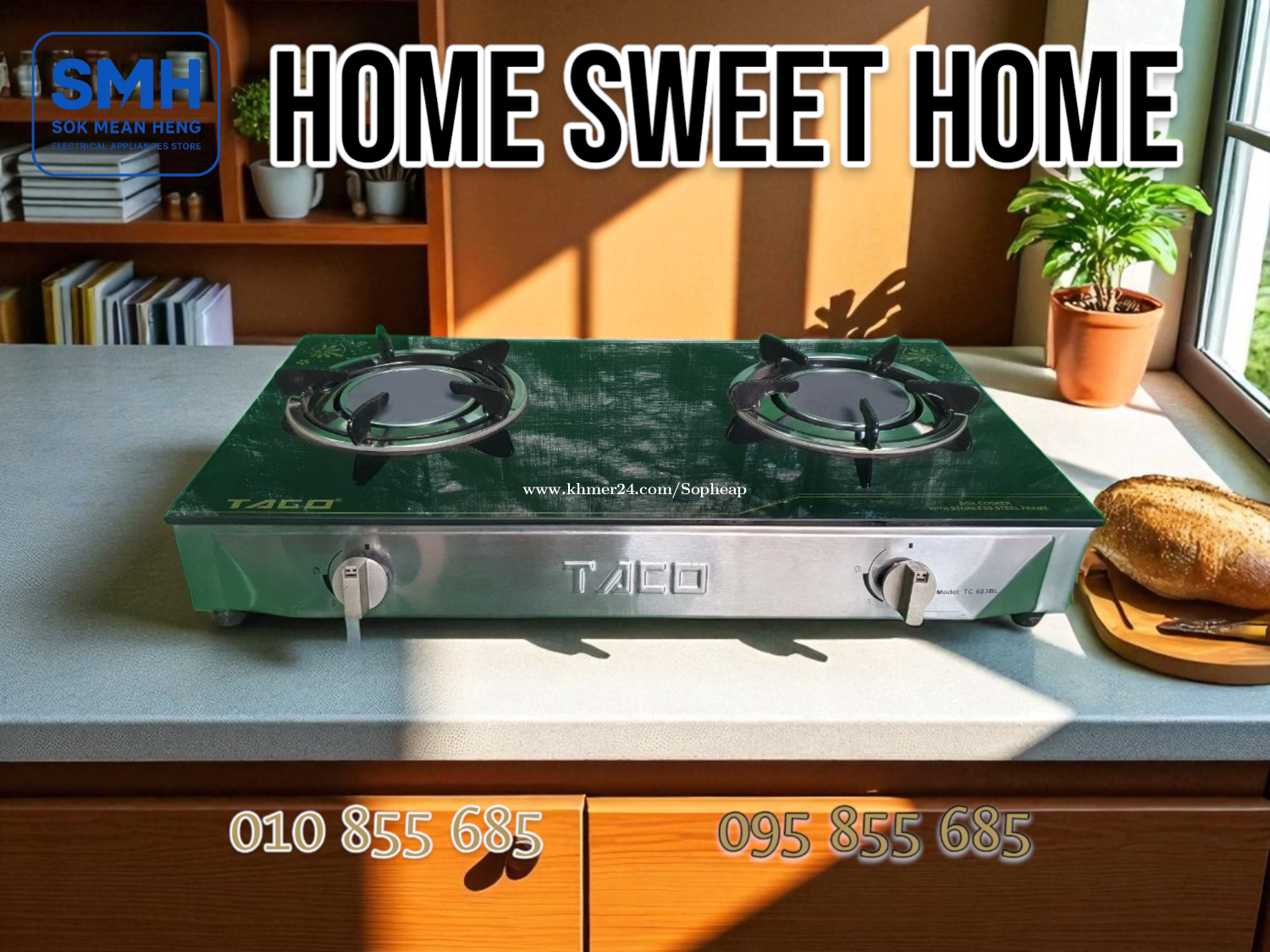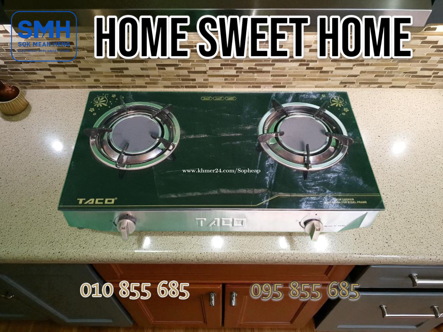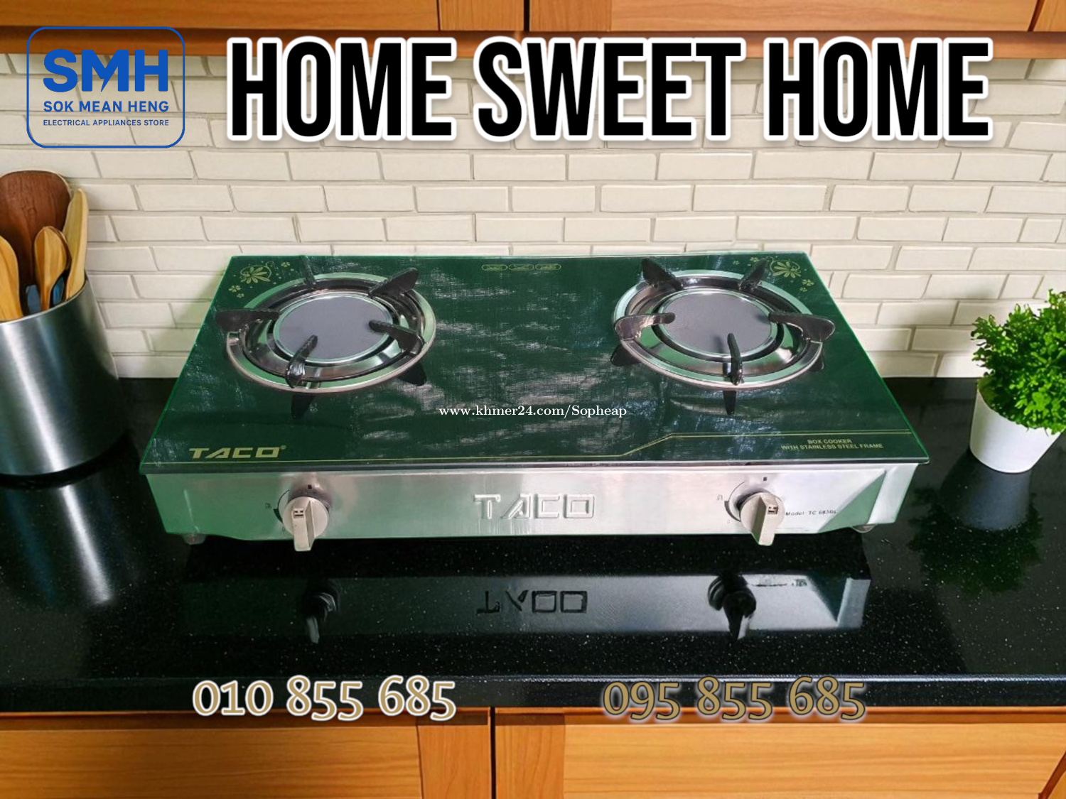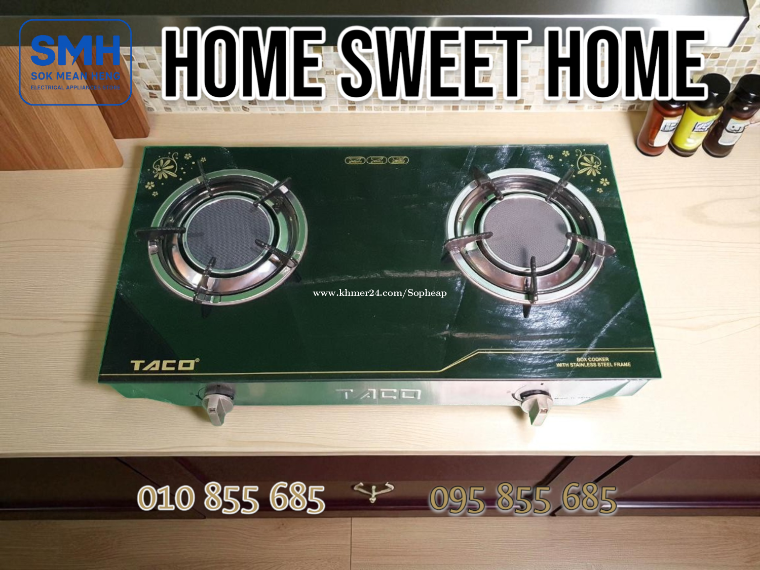 ចង្ក្រានហ្គាស_សំណាញ់ TACO TC-683BL Gas Stove _ Glass _ NEW . * បញ្ចុះតម្លៃពិសេស! ជាផលិតផលតាំងបង្ហាញនៅក្នុងហាង! មានតែ ១គ្រឿងប៉ុណ្ណោះ. * Special discount! This is a product on display in the store! Only 1 piece left. * Noted: No Box. . - ផលិតផលគុណភាពខ្ពស់ / High Quality Product - Material: កញ្ចក់ / Glass - Burner: 2 (Double Burner) - Meas: 680 x 450 x 90 mm - កញ្ចក់ក្រាស់ធន់ / ជើងទ្រធំរឹងមាំ / តួអ៊ីណុករលោងស្អាត - Thick, durable glass / Large, sturdy legs / Smooth, beautiful stainless steel body . * តម្លៃ / Price: 129$ . SMH / សុខ មាន ហេង / Sok Mean Heng ហាងលក់គ្រឿងប្រើប្រាស់អគ្គិសនី / Electrical Appliances Store . ✅ ហាងផ្លូវការដែលមានការទទួលស្គាល់ត្រឹមត្រូវដោយ Khmer24 / Verified Business Account by Khmer24 💯 ទទួលបានទំនុកចិត្តខ្ពស់ពីអតិថិជនជាច្រើន / Trusted by Real Customers. 📍 មានទីតាំងច្បាស់លាស់ និងពិតប្រាកដនៅភ្នំពេញ / We have a clear and real/verified location in Phnom Penh. . Phone / Telegram (សេវាកម្មរហ័ស / Fast Service): Smart: 010855xxxClick To Call / https://t.me/Annsopheap Cellcard: 095855xxxClick To Call / http://t.me/Annsopheap095 . អាស័យដ្ឋាន / Address: No. 392, MaoTseToung Blvd. (St. 245), Phnom Penh. (Near P Jolie Beauty Center) . ផែនទី / Maps: https://www.google.com/maps?q=11.55595844757693,104.90165490657091&15 . #ចង្ក្រានហ្គាស #ចង្ក្រានភ្លោះ #ចង្ក្រានកញ្ចក់ #ថៃ #គ្រឿងអគ្គីសនី #គ្រឿងប្រើប្រាស់អគ្គិសនី #TACO #TC683BL #GasStove #GasCooker #Thailand #SMH #Appliances #ApplianceStore #HomeAppaliance #ElectricAppliances #ElectricalAppliances #Promotion #Discount #Save #Free #New #កម្ពុជា #ខ្មែរ #ភ្នំពេញ #Cambodia #Khmer #PhnomPenh