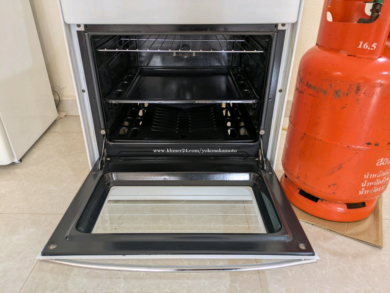 លក់ចង្ក្រានហ្គាសមួយទឹក និងធុងហ្គាស(16.5kg) ចង្ក្រានហ្គាស៖ជាប្រភេទចង្ក្រាន ៤ ភ្នែក។ ភ្នែកទាំង ៤ គឺនៅឆេះល្អទាំងអស់ មិនមានបញ្ហាអ្វីទេ។ ធុងហ្គាស៖ ចំណុះ ១៦.៥ គីឡូ ហើយនៅសល់ហ្គាសលើសពីពាក់កណ្តាល។ ចំណាំ៖ ឡាំងអូវ៉ិនគឺខូច មិនអាចប្រើបានទេ។ Gas stove+Gas tank/Gas Cylinder Gas Stove: 4-burner model. It is in good working condition, and all 4 burners work perfectly. Gas Cylinder: 16.5kg tank. It is more than half full, so you can use it immediately. Note: The oven part is broken. 煤气灶+煤气罐 煤气灶: 四眼炉灶,四个炉眼都能正常点火,火力稳定。 煤气罐: 16.5kg 规格,里面的气还剩一半以上。 备注:烤箱部分已损坏,无法使用