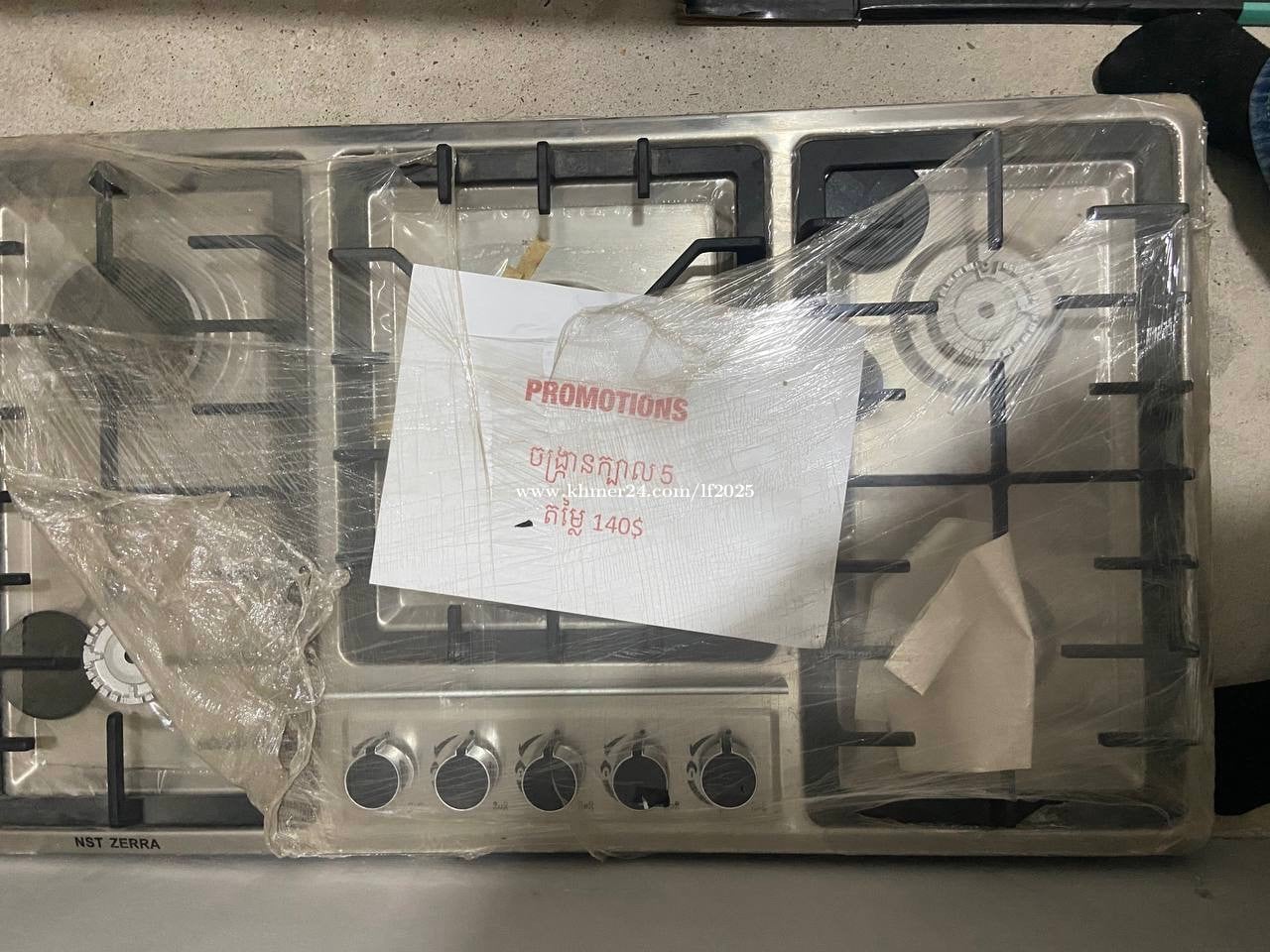 ចង្ក្រាន ក្បាល 3, 4 & 5 និង ម៉ាសុីនបឺតផ្សែង ក្លិន ក្បាល 1, 2 & 3. ថ្មី Stove 3,4,5 burners and Kitchen Hood 1,2 &3 all new