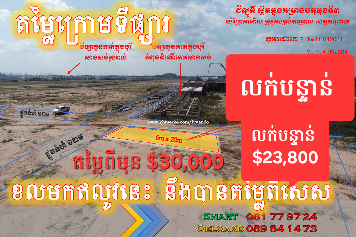 ដីឡូត៍កែង ល្អណាស់ 6m x 20m= 120m² Freeផ្ទេរឈ្មោះពីបុរី សូមអរគុណ