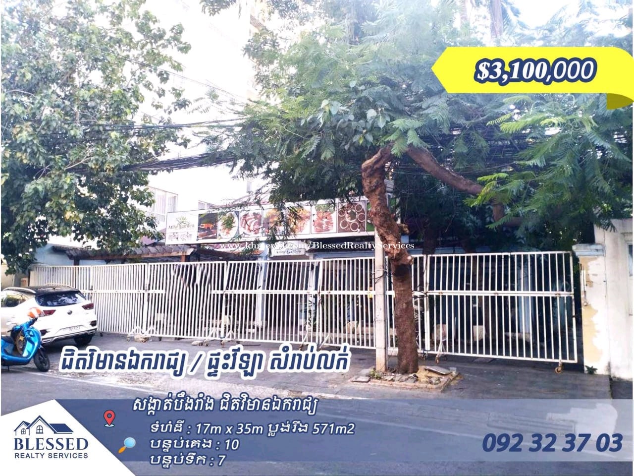 ជិតវិមានឯករាជ្យ 💥 ផ្ទះវីឡា សំរាប់លក់ 💥 💰 តម្លៃ : $3,100,000 ✨ ទំហំដី : 17m x 35m ✨ បន្ទប់គេង : 10 ✨ ប្លង់រឹង : 571m2 ✨ បន្ទប់ទឹក : 7 📍 ទីតាំង សង្កាត់បឹងរាំង ជិតវិមានឯករាជ្យ ទីប្រជុំជន ជិតសាលារៀន ល្អសំរាប់ បើកហាង ក្រុមហ៊ុន អង្កា ស្នាក់នៅ។ 靠近独立纪念碑 💥 别墅出售 💥 💰 售价:3,100,000 美元 ✨ 土地面积:17 米 × 35 米 ✨ 卧室:10 间 ✨ 硬卡面积:571 平方米 ✨ 卫生间:7 间 📍 位置:位于崩让区,靠近独立纪念碑,地处市中心,临近学校,适合开店、公司、机构或居住使用。 📞 Contact: 092323xxxClick To Call ➡️ Telegram: https://t.me/az_chai27 Channel Telegram: https://t.me/rent_blessedrealty License Number: E-25-030