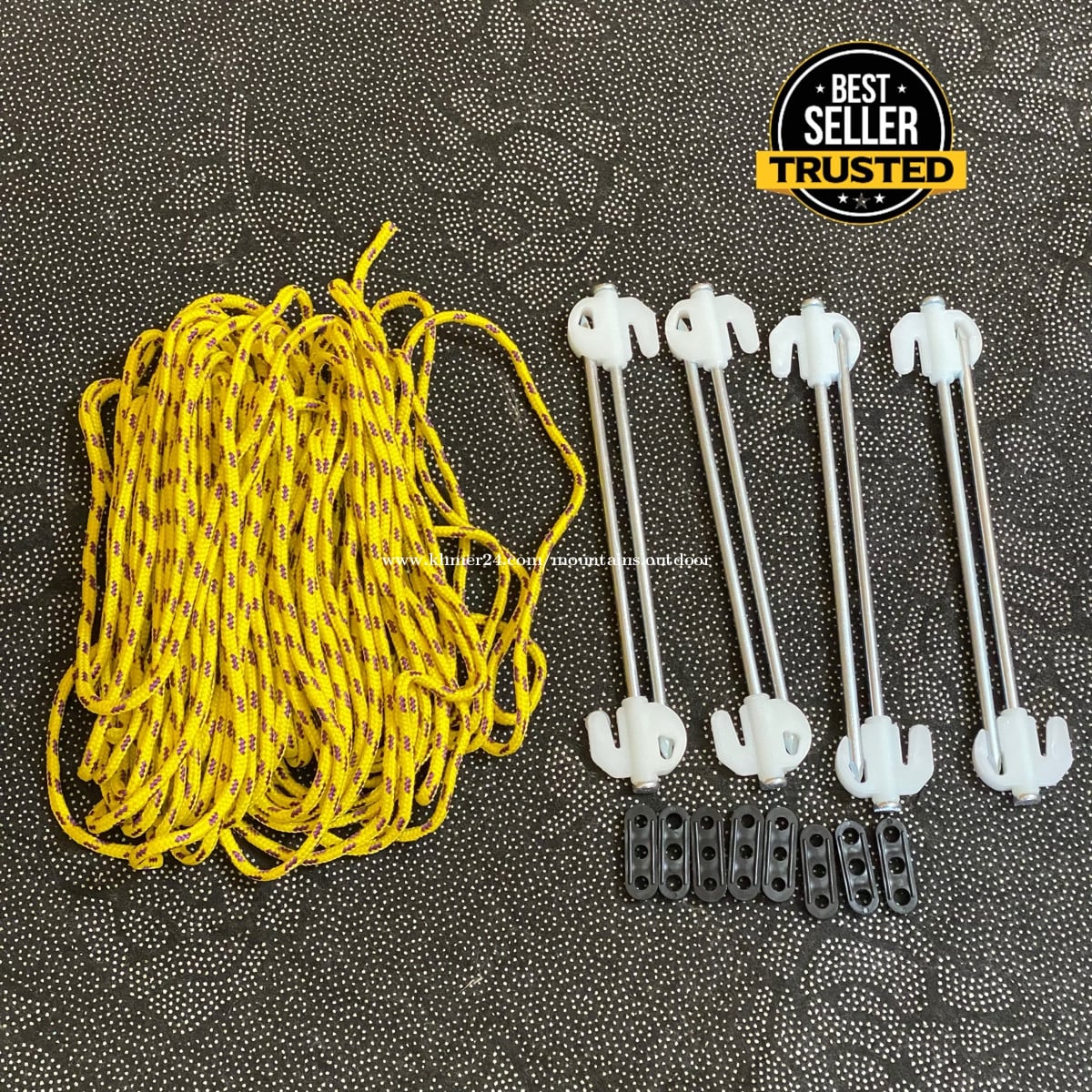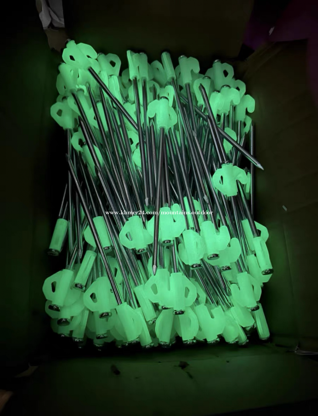 Accessories Set / ឈុតបង្គោលមានពន្លឺ 📦 Includes / រួមមាន៖ • 8 × Glow tent pegs / ដែកគោលតង់ពន្លឺយប់ • 8 × Guy lines / ខ្សែតង់ • 8 × Wind tensioners / ខ្សែចងលៃតម្រូវ 📏 Size / ទំហំ៖ • Tent peg length / ប្រវែងដែកគោលតង់៖ 20 cm • Guy line length / ប្រវែងខ្សែ៖ 3 m / ដុំ ✨ Feature / លក្ខណៈ៖ • Glow in the dark – easy to see at night/មើលឃើញងាយនៅពេលយប់ ————————————————————— *Contact:0966381xxxClick To Call/https://t.me/mountains_outdoor *Address:Borey Sorlar, 7A Street 371, Phnom Penh