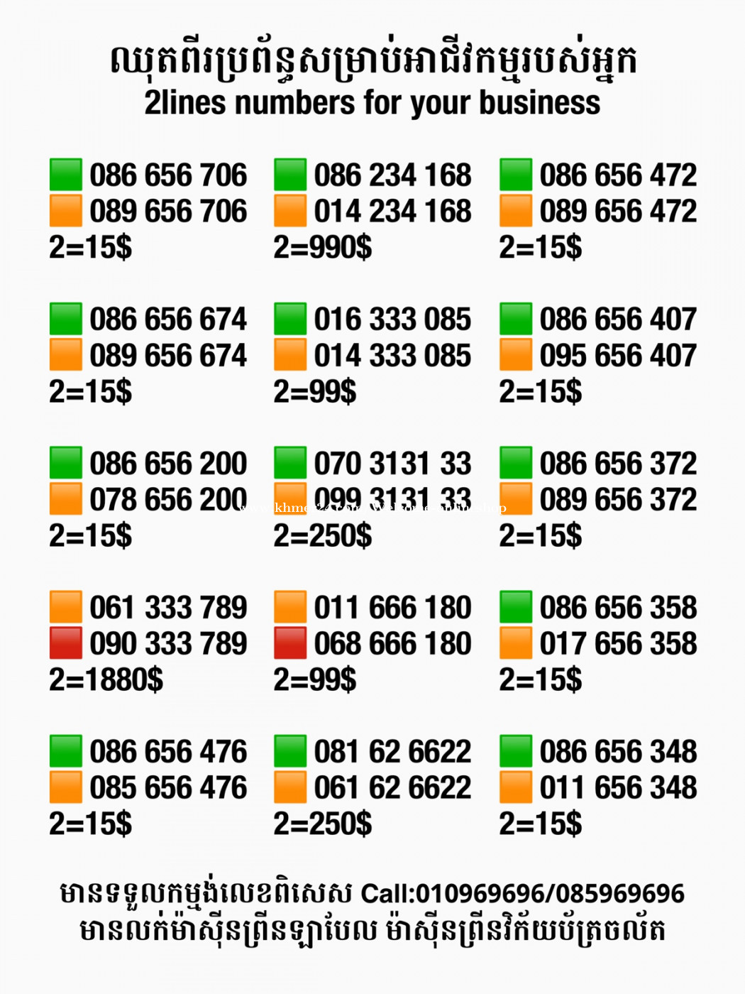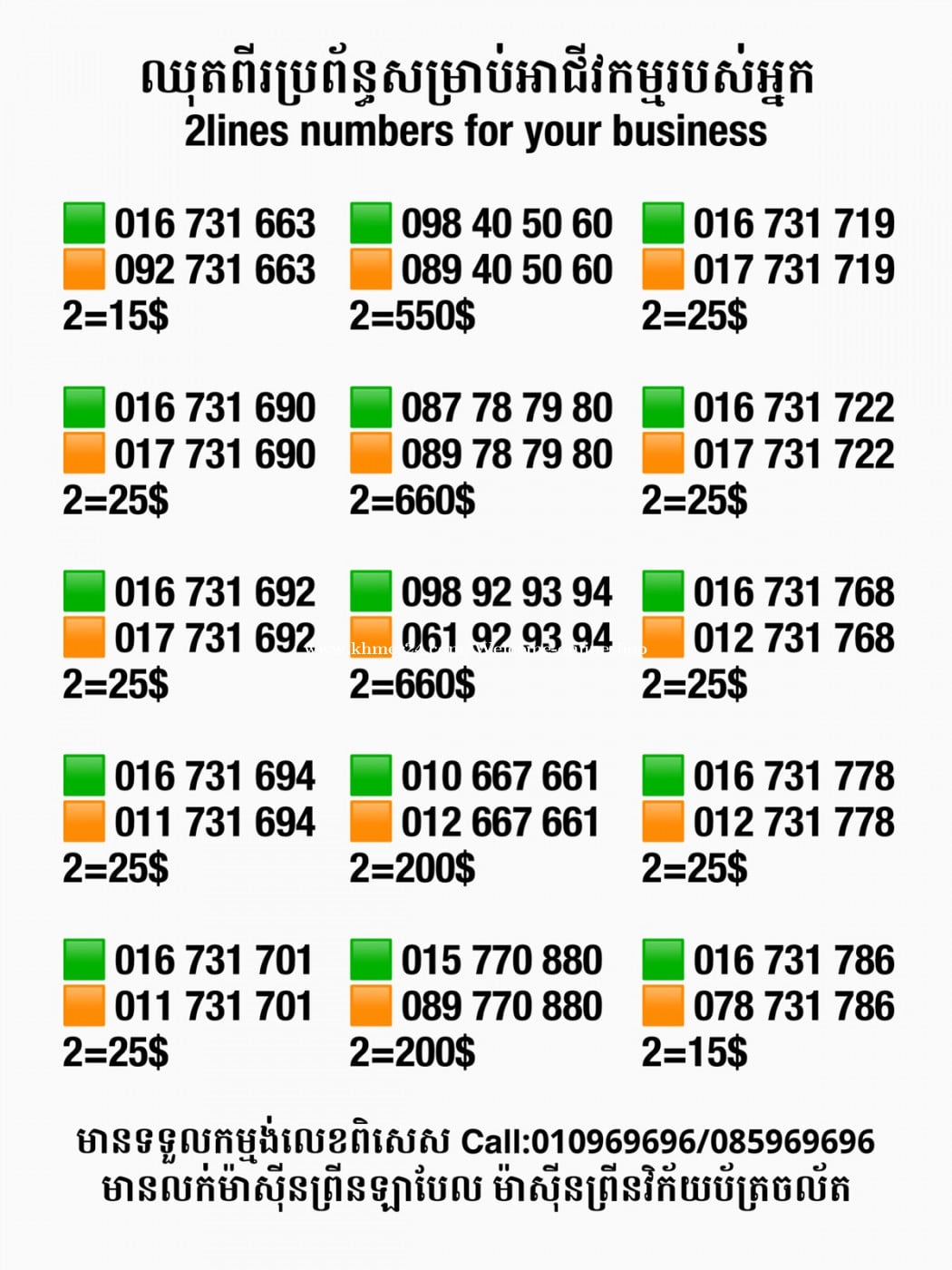 មានលក់លេខពិសេស មានទទួលកម្មង់លេខពិសេស មានលក់ម៉ាស៊ីនព្រីនឡាបែល មានលក់ម៉ាស៊ីនព្រីនវិក័យប័ត្រ មានលក់សម្ភារៈប្រើប្រាស់ក្នុងគ្រួសារ Smart Prime II 1=30$ Smart hero 1=40$ ទូរសព្ទថ្មីក្នុងប្រអប់ លក់ធូរៗរហូតអស់ពីស្តុក អាចប្រើជាឧបករណ៍សម្រាប់ស៊ែរ wifi បាន ទំនាក់ទំនង(ខ្មែរ | English | 中文):010969696 | 085969696 Telegram: https://t.me/W9696 Telegram group: https://t.me/konkonnada អាសយដ្ឋាន:ផ្ទះលេខ២៣ ផ្លូវបេតុងលេខ១ ភូមិទួលពង្រ សង្កាត់ចោមចៅ ខណ្ឌពោធិ៍សែនជ័យ រាជធានីភ្នំពេញ ទីតាំង https://goo.gl/maps/8moqW4iTHUfJEvWQ9 ដើម្បីស្វែងរកលេខអាជីវកម្មដែលលោកអ្នកពេញចិត្ត សូមចូលទៅកាន់:https://www.khmer24.com/Welcome-onlineshop