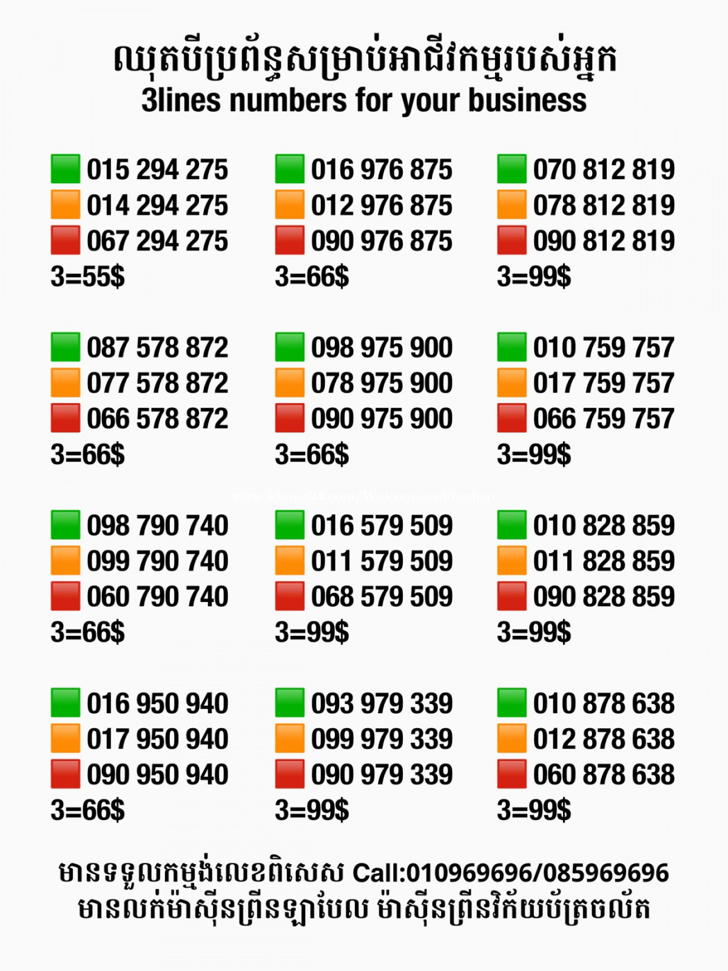 មានលក់លេខពិសេស មានទទួលកម្មង់លេខពិសេស មានលក់ម៉ាស៊ីនព្រីនឡាបែល មានលក់ម៉ាស៊ីនព្រីនវិក័យប័ត្រ មានលក់សម្ភារៈប្រើប្រាស់ក្នុងគ្រួសារ Smart Prime II 1=30$ Smart hero 1=40$ ទូរសព្ទថ្មីក្នុងប្រអប់ លក់ធូរៗរហូតអស់ពីស្តុក អាចប្រើជាឧបករណ៍សម្រាប់ស៊ែរ wifi បាន ទំនាក់ទំនង(ខ្មែរ | English | 中文):010969696 | 085969696 Telegram: https://t.me/W9696 Telegram group: https://t.me/konkonnada អាសយដ្ឋាន:ផ្ទះលេខ២៣ ផ្លូវបេតុងលេខ១ ភូមិទួលពង្រ សង្កាត់ចោមចៅ ខណ្ឌពោធិ៍សែនជ័យ រាជធានីភ្នំពេញ ទីតាំង https://goo.gl/maps/8moqW4iTHUfJEvWQ9 ដើម្បីស្វែងរកលេខអាជីវកម្មដែលលោកអ្នកពេញចិត្ត សូមចូលទៅកាន់:https://www.khmer24.com/Welcome-onlineshop