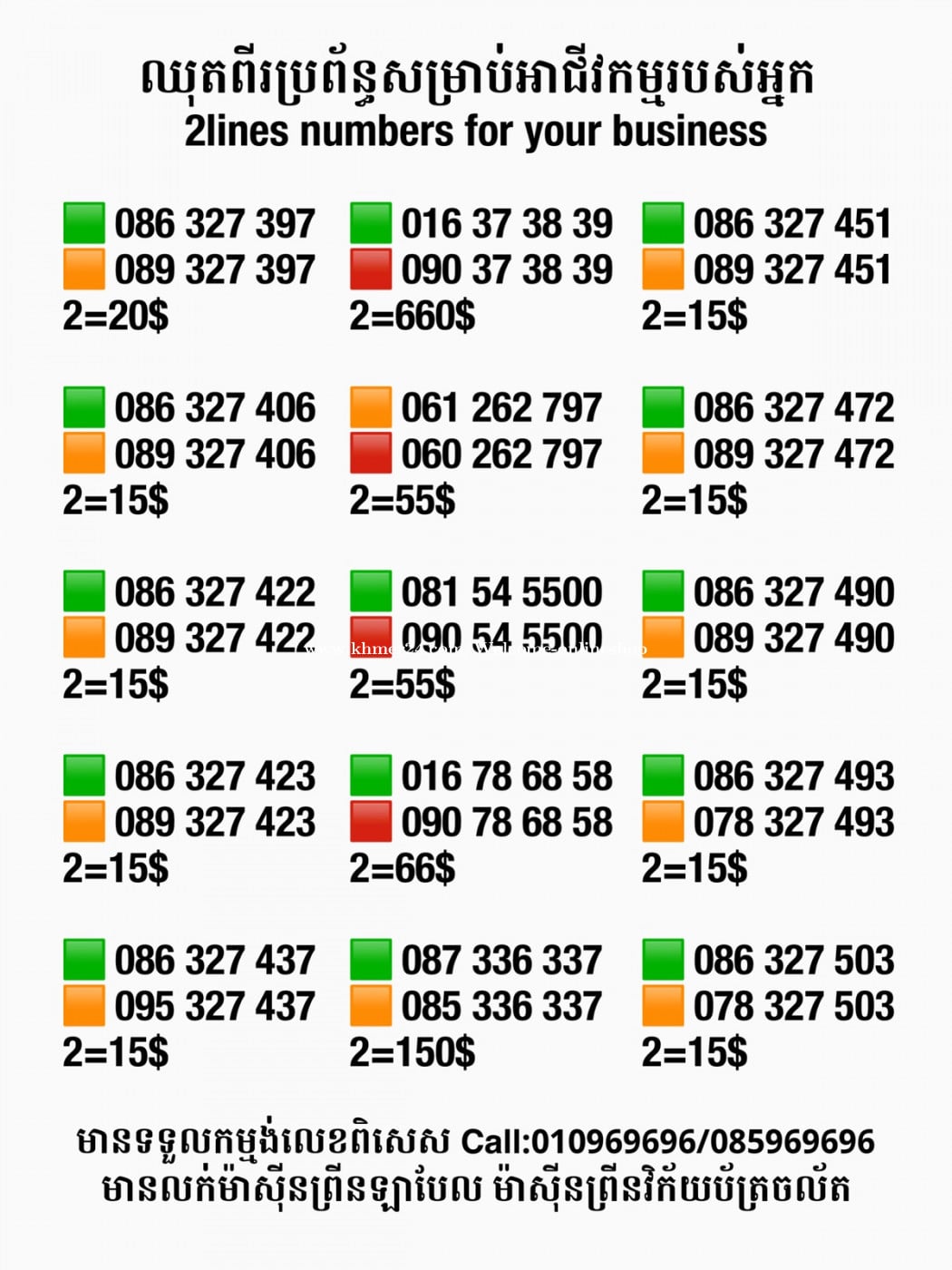 មានលក់លេខពិសេស មានទទួលកម្មង់លេខពិសេស មានលក់ម៉ាស៊ីនព្រីនឡាបែល មានលក់ម៉ាស៊ីនព្រីនវិក័យប័ត្រ មានលក់សម្ភារៈប្រើប្រាស់ក្នុងគ្រួសារ Smart Prime II 1=30$ Smart hero 1=40$ ទូរសព្ទថ្មីក្នុងប្រអប់ លក់ធូរៗរហូតអស់ពីស្តុក អាចប្រើជាឧបករណ៍សម្រាប់ស៊ែរ wifi បាន ទំនាក់ទំនង(ខ្មែរ | English | 中文):010969696 | 085969696 Telegram: https://t.me/W9696 Telegram group: https://t.me/konkonnada អាសយដ្ឋាន:ផ្ទះលេខ២៣ ផ្លូវបេតុងលេខ១ ភូមិទួលពង្រ សង្កាត់ចោមចៅ ខណ្ឌពោធិ៍សែនជ័យ រាជធានីភ្នំពេញ ទីតាំង https://goo.gl/maps/8moqW4iTHUfJEvWQ9 ដើម្បីស្វែងរកលេខអាជីវកម្មដែលលោកអ្នកពេញចិត្ត សូមចូលទៅកាន់:https://www.khmer24.com/Welcome-onlineshop