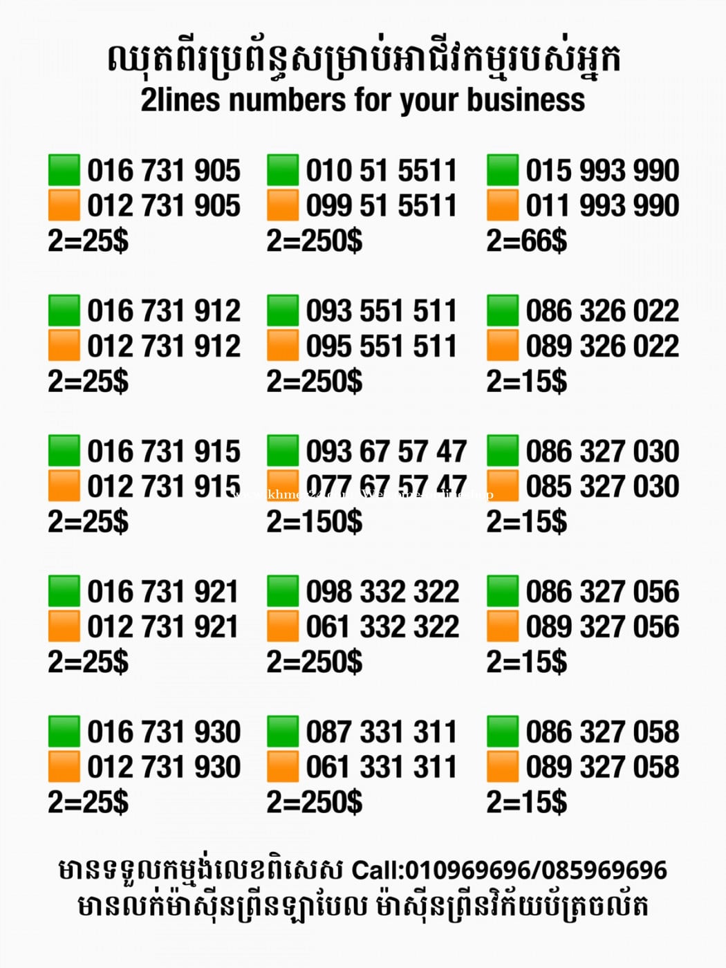 មានលក់លេខពិសេស មានទទួលកម្មង់លេខពិសេស មានលក់ម៉ាស៊ីនព្រីនឡាបែល មានលក់ម៉ាស៊ីនព្រីនវិក័យប័ត្រ មានលក់សម្ភារៈប្រើប្រាស់ក្នុងគ្រួសារ Smart Prime II 1=30$ Smart hero 1=40$ ទូរសព្ទថ្មីក្នុងប្រអប់ លក់ធូរៗរហូតអស់ពីស្តុក អាចប្រើជាឧបករណ៍សម្រាប់ស៊ែរ wifi បាន ទំនាក់ទំនង(ខ្មែរ | English | 中文):010969696 | 085969696 Telegram: https://t.me/W9696 Telegram group: https://t.me/konkonnada អាសយដ្ឋាន:ផ្ទះលេខ២៣ ផ្លូវបេតុងលេខ១ ភូមិទួលពង្រ សង្កាត់ចោមចៅ ខណ្ឌពោធិ៍សែនជ័យ រាជធានីភ្នំពេញ ទីតាំង https://goo.gl/maps/8moqW4iTHUfJEvWQ9 ដើម្បីស្វែងរកលេខអាជីវកម្មដែលលោកអ្នកពេញចិត្ត សូមចូលទៅកាន់:https://www.khmer24.com/Welcome-onlineshop
