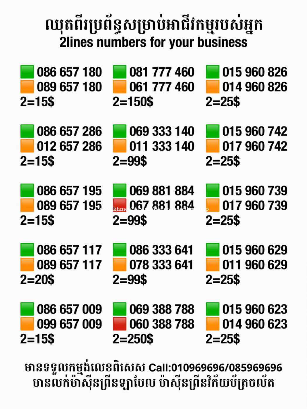 មានលក់លេខពិសេស មានទទួលកម្មង់លេខពិសេស មានលក់ម៉ាស៊ីនព្រីនឡាបែលចល័ត មានលក់ម៉ាស៊ីនព្រីនវិក័យប័ត្រចល័ត មានលក់សម្ភារៈប្រើប្រាស់ក្នុងគ្រួសារ Smart Prime II 1=30$ Smart hero 1=40$ ទូរសព្ទថ្មីក្នុងប្រអប់ លក់ធូរៗរហូតអស់ពីស្តុក អាចប្រើជាឧបករណ៍សម្រាប់ស៊ែរ wifi បាន ទំនាក់ទំនង(ខ្មែរ | English | 中文):010969696 | 085969696 Telegram: https://t.me/W9696 Telegram group: https://t.me/konkonnada អាសយដ្ឋាន:ផ្ទះលេខ២៣ ផ្លូវបេតុងលេខ១ ភូមិទួលពង្រ សង្កាត់ចោមចៅ ខណ្ឌពោធិ៍សែនជ័យ រាជធានីភ្នំពេញ ទីតាំង https://goo.gl/maps/8moqW4iTHUfJEvWQ9 ដើម្បីស្វែងរកលេខអាជីវកម្មដែលលោកអ្នកពេញចិត្ត សូមចូលទៅកាន់:https://www.khmer24.com/Welcome-onlineshop