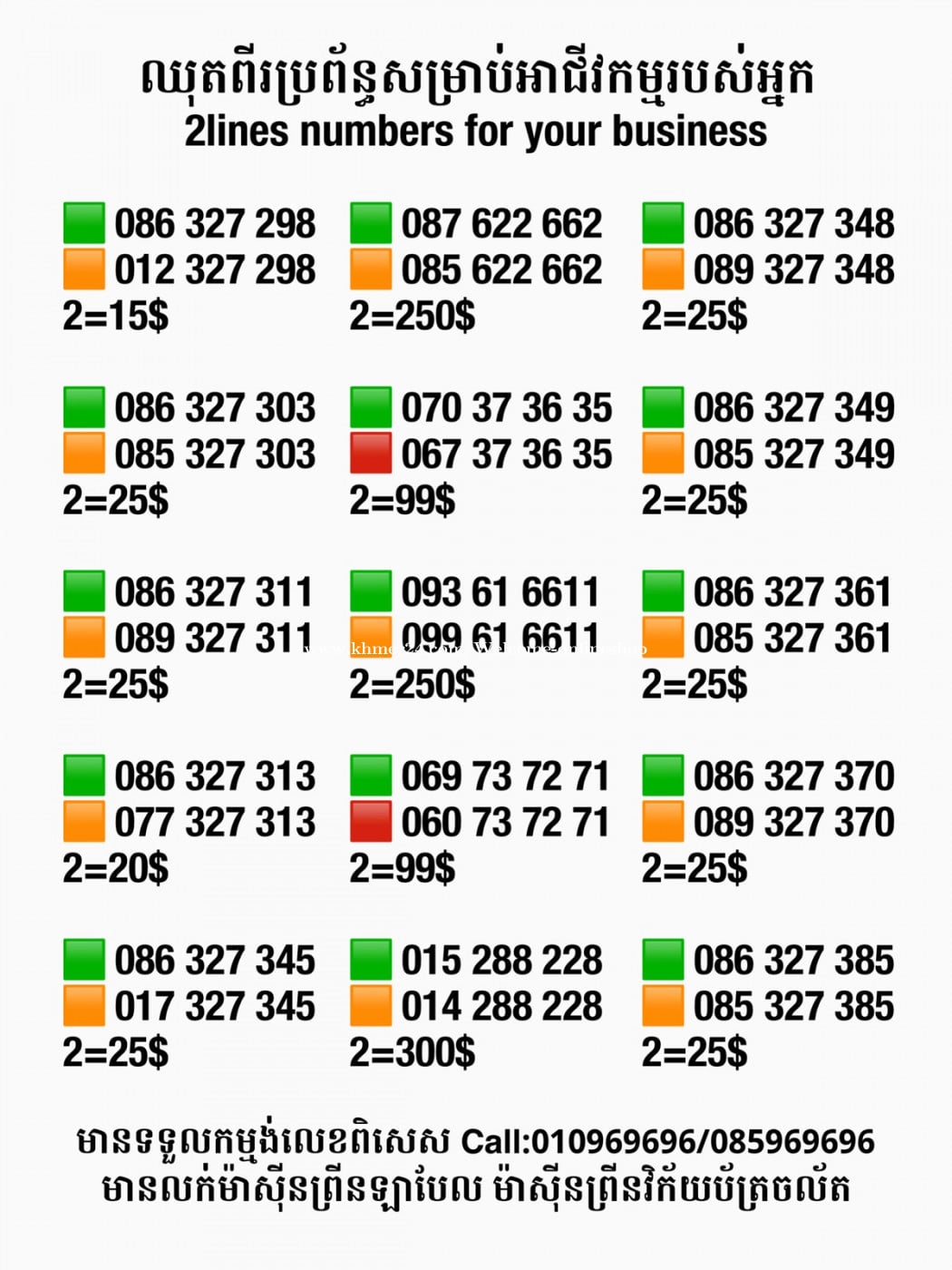 មានលក់លេខពិសេស មានទទួលកម្មង់លេខពិសេស មានលក់ម៉ាស៊ីនព្រីនឡាបែលចល័ត មានលក់ម៉ាស៊ីនព្រីនវិក័យប័ត្រចល័ត មានលក់សម្ភារៈប្រើប្រាស់ក្នុងគ្រួសារ Smart Prime II 1=30$ Smart hero 1=40$ ទូរសព្ទថ្មីក្នុងប្រអប់ លក់ធូរៗរហូតអស់ពីស្តុក អាចប្រើជាឧបករណ៍សម្រាប់ស៊ែរ wifi បាន ទំនាក់ទំនង(ខ្មែរ | English | 中文):010969696 | 085969696 Telegram: https://t.me/W9696 Telegram group: https://t.me/konkonnada អាសយដ្ឋាន:ផ្ទះលេខ២៣ ផ្លូវបេតុងលេខ១ ភូមិទួលពង្រ សង្កាត់ចោមចៅ ខណ្ឌពោធិ៍សែនជ័យ រាជធានីភ្នំពេញ ទីតាំង https://goo.gl/maps/8moqW4iTHUfJEvWQ9 ដើម្បីស្វែងរកលេខអាជីវកម្មដែលលោកអ្នកពេញចិត្ត សូមចូលទៅកាន់:https://www.khmer24.com/Welcome-onlineshop