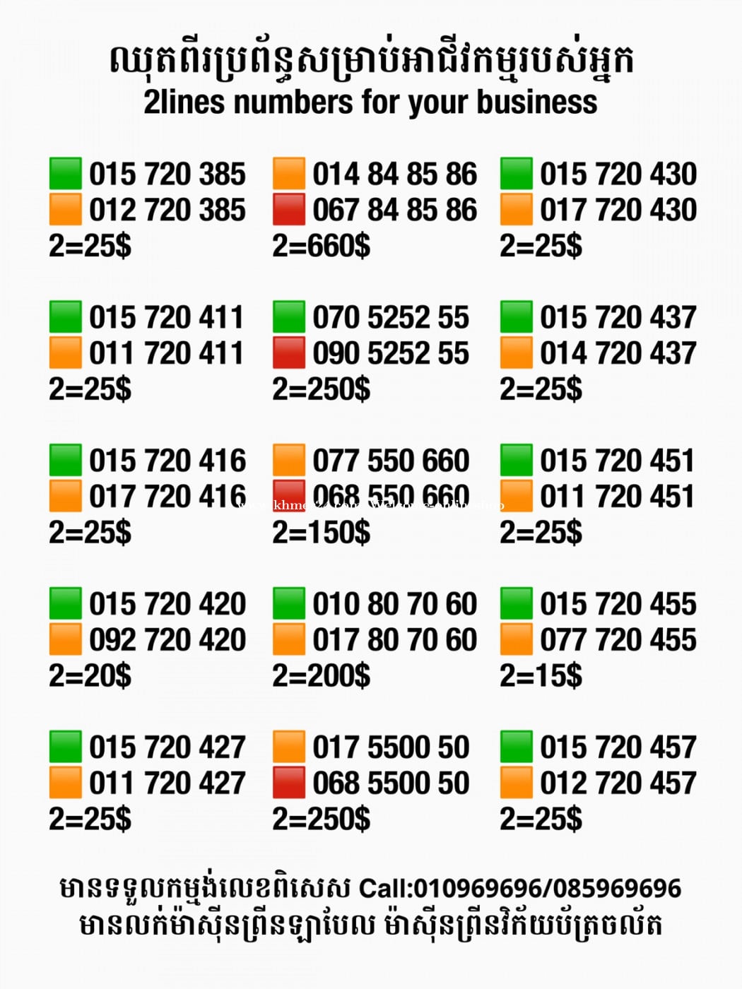 មានលក់លេខពិសេស មានទទួលកម្មង់លេខពិសេស មានលក់ម៉ាស៊ីនព្រីនឡាបែលចល័ត មានលក់ម៉ាស៊ីនព្រីនវិក័យប័ត្រចល័ត មានលក់សម្ភារៈប្រើប្រាស់ក្នុងគ្រួសារ Smart Prime II 1=30$ Smart hero 1=40$ ទូរសព្ទថ្មីក្នុងប្រអប់ លក់ធូរៗរហូតអស់ពីស្តុក អាចប្រើជាឧបករណ៍សម្រាប់ស៊ែរ wifi បាន ទំនាក់ទំនង(ខ្មែរ | English | 中文):010969696 | 085969696 Telegram: https://t.me/W9696 Telegram group: https://t.me/konkonnada អាសយដ្ឋាន:ផ្ទះលេខ២៣ ផ្លូវបេតុងលេខ១ ភូមិទួលពង្រ សង្កាត់ចោមចៅ ខណ្ឌពោធិ៍សែនជ័យ រាជធានីភ្នំពេញ ទីតាំង https://goo.gl/maps/8moqW4iTHUfJEvWQ9 ដើម្បីស្វែងរកលេខអាជីវកម្មដែលលោកអ្នកពេញចិត្ត សូមចូលទៅកាន់:https://www.khmer24.com/Welcome-onlineshop
