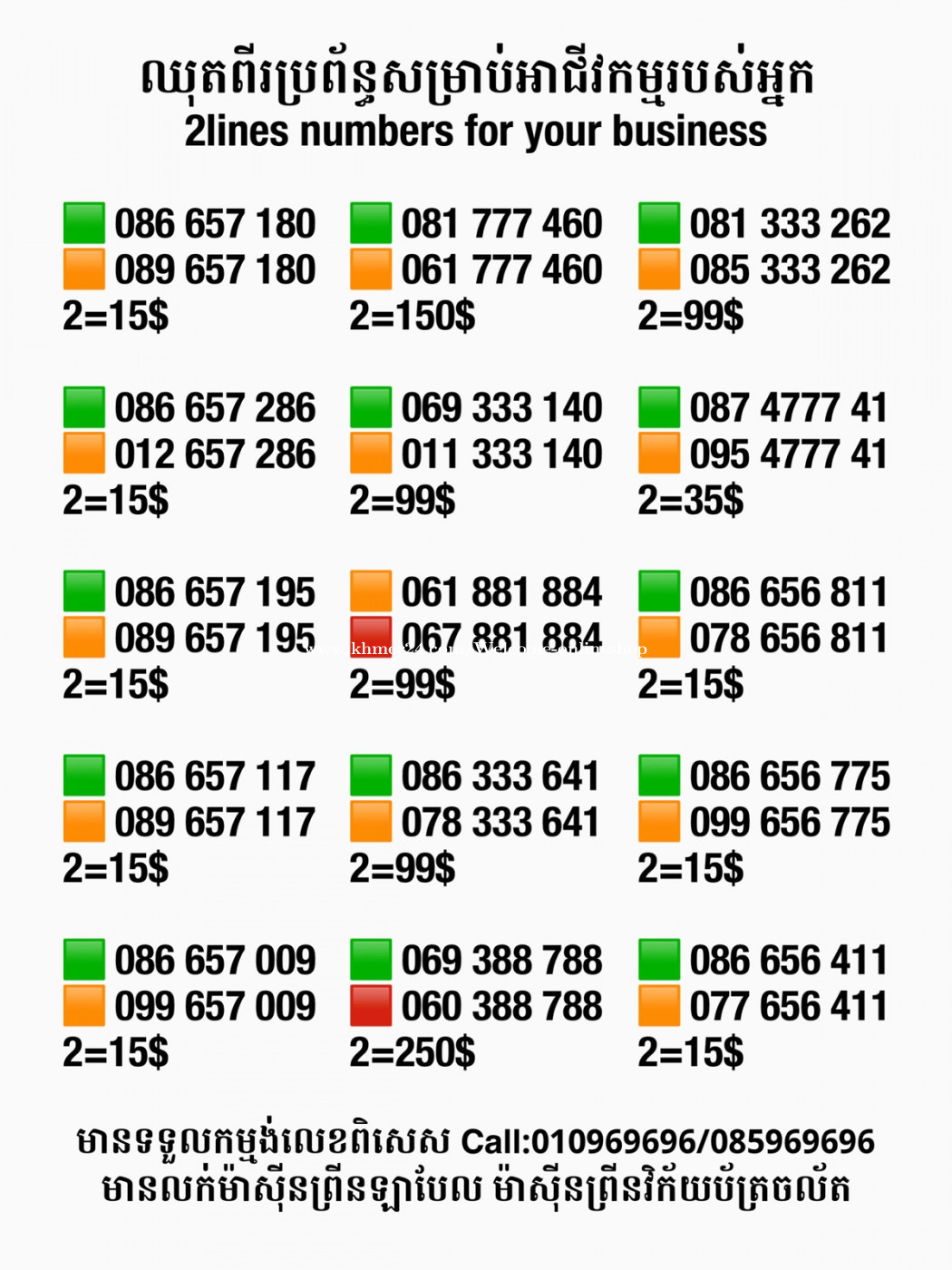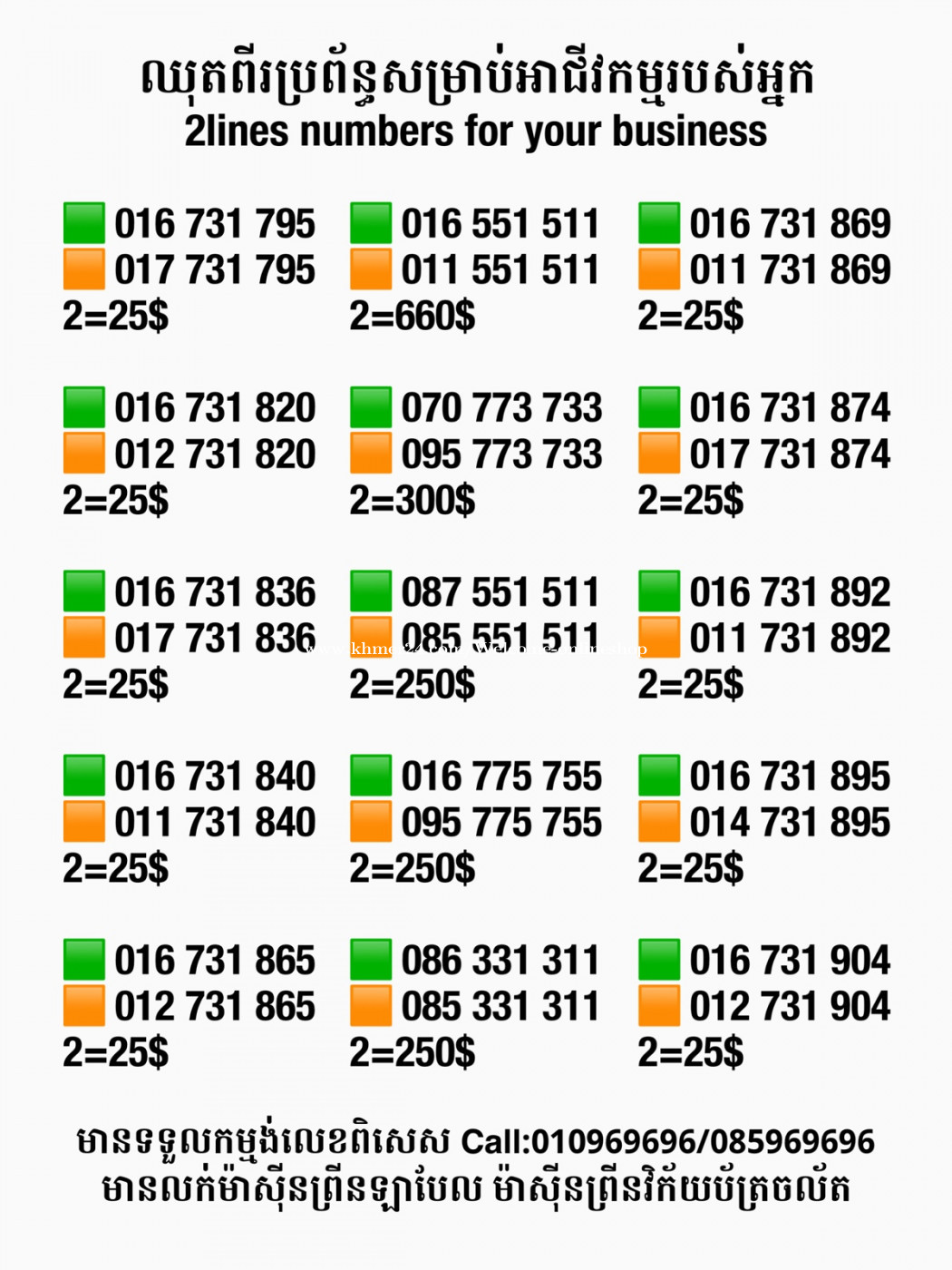 មានលក់លេខពិសេស មានទទួលកម្មង់លេខពិសេស មានលក់ម៉ាស៊ីនព្រីនឡាបែលចល័ត មានលក់ម៉ាស៊ីនព្រីនវិក័យប័ត្រចល័ត មានលក់សម្ភារៈប្រើប្រាស់ក្នុងគ្រួសារ Smart Prime II 1=30$ Smart hero 1=40$ ទូរសព្ទថ្មីក្នុងប្រអប់ លក់ធូរៗរហូតអស់ពីស្តុក អាចប្រើជាឧបករណ៍សម្រាប់ស៊ែរ wifi បាន ទំនាក់ទំនង(ខ្មែរ | English | 中文):010969696 | 085969696 Telegram: https://t.me/W9696 Telegram group: https://t.me/konkonnada អាសយដ្ឋាន:ផ្ទះលេខ២៣ ផ្លូវបេតុងលេខ១ ភូមិទួលពង្រ សង្កាត់ចោមចៅ ខណ្ឌពោធិ៍សែនជ័យ រាជធានីភ្នំពេញ ទីតាំង https://goo.gl/maps/8moqW4iTHUfJEvWQ9 ដើម្បីស្វែងរកលេខអាជីវកម្មដែលលោកអ្នកពេញចិត្ត សូមចូលទៅកាន់:https://www.khmer24.com/Welcome-onlineshop
