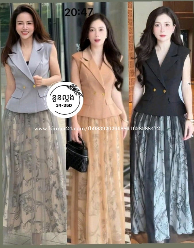 ការរចនាស្អាតបែបនារីសម័យថ្មី សំពត់ស្បៃជាមួយអាវសាច់ក្រណាត់ទន់រលាស់ស្រួលពាក់💁