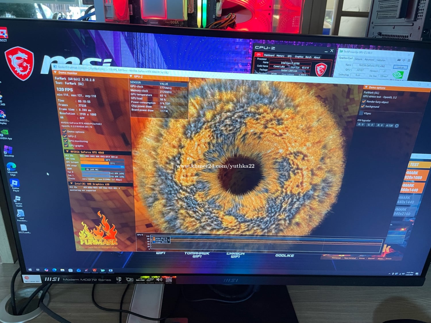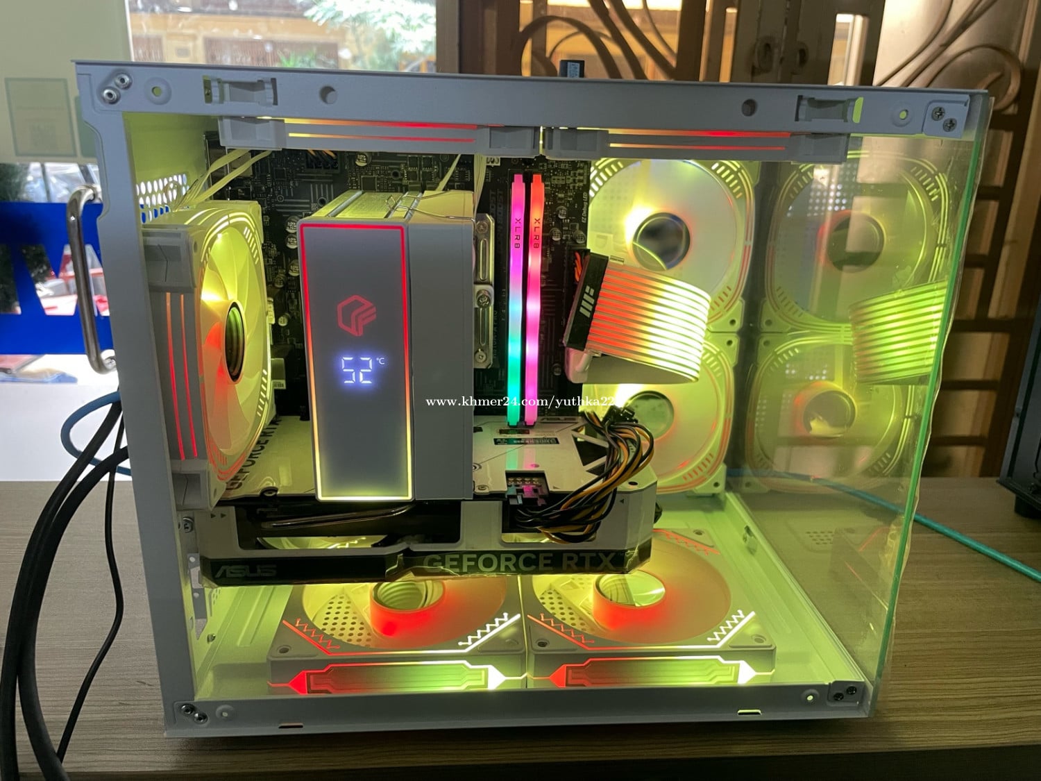 White M-ATX (អត់តែ Board និង Power Black) - M/B : MSI H510M Pro A (have M.2 WiFi ready) - Core i7 10700 (2.90mhz 8C/16T) - RAM PNY 32Gb (16x2 3200mt/s RGB) - M.2 256gb + HDD 4T - Air Cooler White ARGB (Show Temperature) - GPU : ASUS dual RTX 4060 8G (White Edition) - Case M-ATX with ARGB 7 Fans and remote control - Power Supply 550w 80 plus Bronze
