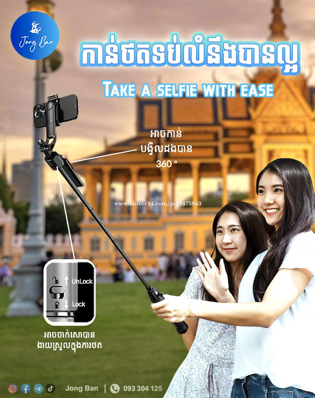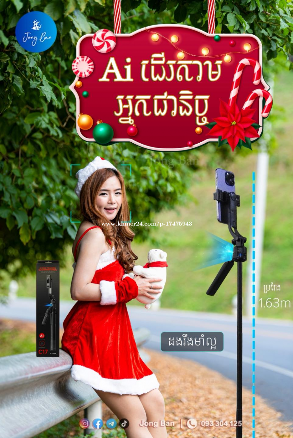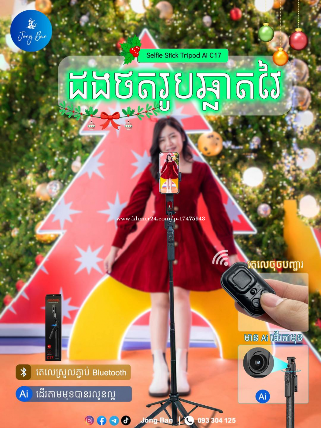 𝙎𝙤 𝙘𝙤𝙤𝙡!! 🤩🤳🏻ដងថត Ai ដើរតាមមុខ! 😍 យកម្នាក់មួយទុកថតដើរលេងរដូវកាល Christmas និង ឆ្លងឆ្នាំ!! វែងល្អ..មាំល្អ!✨ 𝐒𝐞𝐥𝐟𝐢𝐞 𝐒𝐭𝐢𝐜𝐤 𝐓𝐫𝐢𝐩𝐨𝐝 𝐀𝐢 𝐂17✨with Ai អាចកុម្ម៉ង់បានពី Jong Ban តម្លៃសមរម្យ គុណភាពកប់!😘🫶🏻 ⭐️ពិសេសត្រង់: > មានប្រព័ន្ធ Ai ដើរតាមមុខ > អាចធ្វើជាដង selfie ក៏បាន Tripod ក៏បាន > បង្វិលក្បាលបាន 360° > មាន Gimbal ទប់លំនឹងឲ្យថតស្អាត > មានប្រវែងដល់ 1.63m > មានតេលេចុចបញ្ជារ > ជើងបួនទប់លំនឹងមាំល្អ > ដាក់ជាមួយ camera ឌីជីថល និងប្រដាប់ថតផ្សេងៗបាន មានក្នុងស្តុកស្រាប់ បងៗ 𝙅𝙤𝙣𝙜 𝘽𝙖𝙣 អាចកុម្ម៉ងបាន 🙏🏻😍 💥 Discount + FREE ថ្លៃដឹកឲ្យ (promotion) 📲Social Platforms: IG: https://shorturl.at/YggID Telegram: https://t.me/jongban11 Tik Tok: https://shorturl.at/DnTGa ⭐️កុម្ម៉ង់ភ្លាមយកភ្លាម (FAST DELIVERY): https://t.me/businesswithsuor 📱លេខទំនាក់ទំនង: 093304xxxClick To Call #jongban #selfiestick #tripod #C17 #selfiestickai