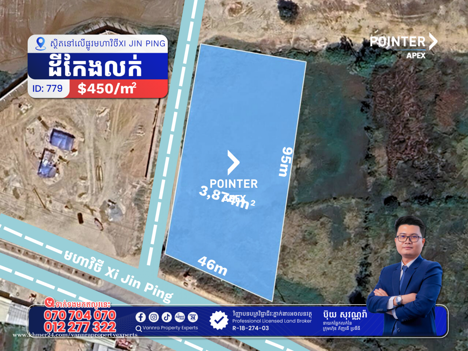ដីកែងសម្រាប់លក់លើផ្លូវមហាវិថី សុី ជិនពីង សម្រាប់លក់:$1,743,300 ទំហំដី: 46m x 95m (3,874m2) 🔐លេខកូដអចលនវត្ថុ៖ 779 📌 ស្ថិតនៅមហាវិថី សុី ជិនពីង ឃុំជើងកើប ស្រុកកណ្តាលស្ទឹង ខេត្តកណ្តាល ——————————— ទាក់ទងមកឥលូវនេះ៖ Call: 070704xxxClick To Call / 012277xxxClick To Call Telegram: https://t.me/vannraaa 微信号: vannra-experts - Channel: https://t.me/vannrapropertyexperts - Tiktok: https://www.tiktok.com/@vannra_property_experts - Facebook: https://www.facebook.com/vannra.phnompenh.property/