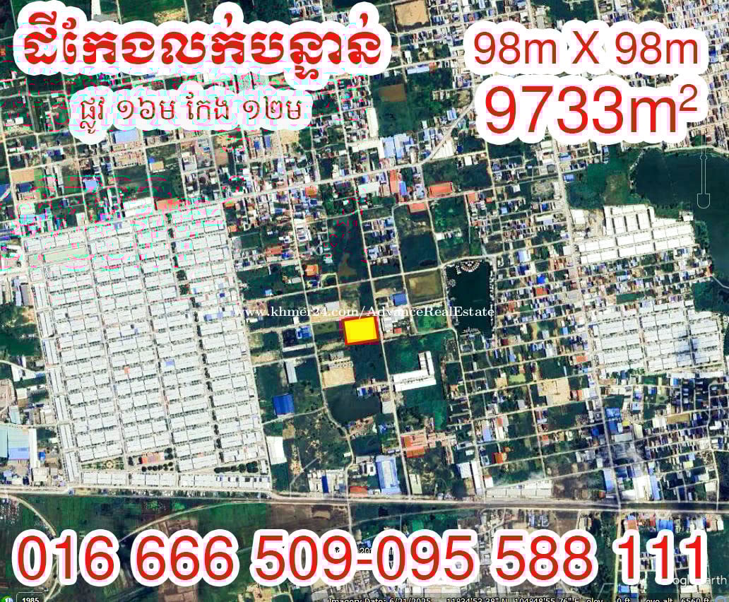 🔊 ដីកែងលក់បន្ទាន់ (ជិតបុរីពិភពថ្មីឈូកវ៉ា២) ✅ (ផ្លូវ 16m កែងផ្លូវ 12m) ✅ ទំហំដី ៖ 98m x 98m (ក្នុងប្លង់រឹង 9733ម៉ែត្រការ៉េ) ✅ ល្អសម្រាប់ សង់ផ្ទះល្វែងលក់ ឃ្លាំង ទិញទុកចំណេញ ✅ តម្លៃលក់៖ $200/m2 (ចរចា) ✅ តម្លៃនេះបូករួមទាំងការផ្ទេរកម្មសិទ្ធិប្លង់រឹងជូន 📍 ទីតាំង៖ ស្ថិតនៅភូមិកាកាប សង្កាត់កាកាបទី២ ខណ្ឌពោធ៍សែនជ័យ រាជធានីភ្នំពេញ 📞សម្រាប់ព័ត៌មានបន្ថែមសូមទំនាក់ទំនង : 016666xxxClick To Call / 095588xxxClick To Call Telegram:៖ https://t.me/sophoeurk_phim