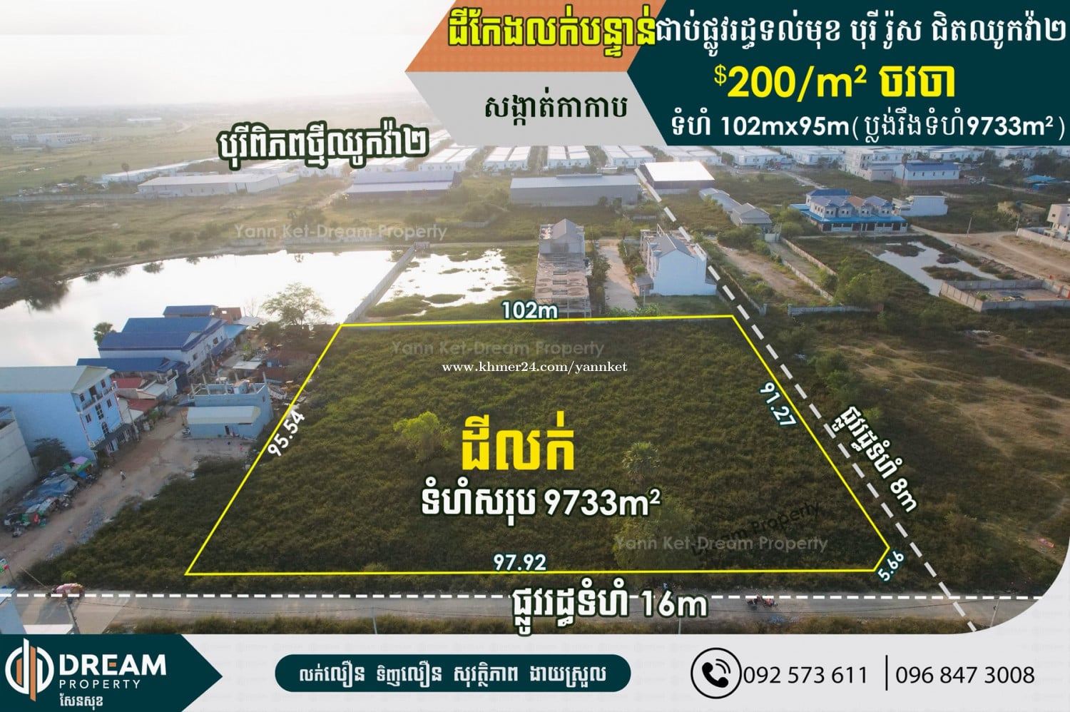 ដីកែងលក់ខាងកើតឈូកវ៉ា២ ជិតឈូកវ៉ា៣ សង្កាត់កាកាប Land for Sale Sangkat Kakab Khan Porsencgey ✅តម្លៃ | Price 200/m2 ចរចា ✅ទំហំដី | Land size: 102mx95m(ប្លង់រឹង) ✅ផ្លូវ | Road size 16m and 8m 📍ទីតាំងទល់មុខបុរីរ៉ូស សង្កាត់កាកាប ខណ្ឌពោធិ៍សែនជ័យ | Location: Sangkat Kakab, Khan Porsenchey, Phnom Penh. ទំនាក់ទំនង | Contact for more info Telegram: https://t.me/ket_611 Call 0968473xxxClick To Call / 092573xxxClick To Call
