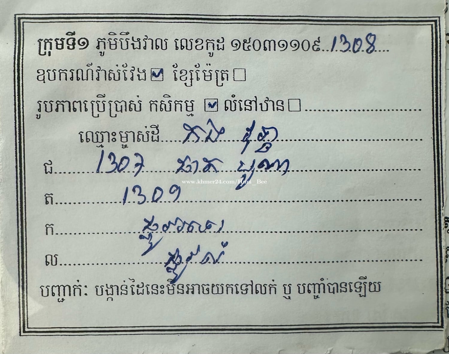 🌱 មានដំណាំដូងក្រអូប ស្វាយ ចន្ទី 🌱 ក្បាល ១០០ ម៉ែត្រ បណ្តោយ ១០០០ ម៉ែត្រ 🌱 មានបង្កាន់ដៃទទួលប្លង់រឹង 🌱 ផ្ទះត្រចៀកកាំ 🌱 មានរបងលួសជុំវិញដី