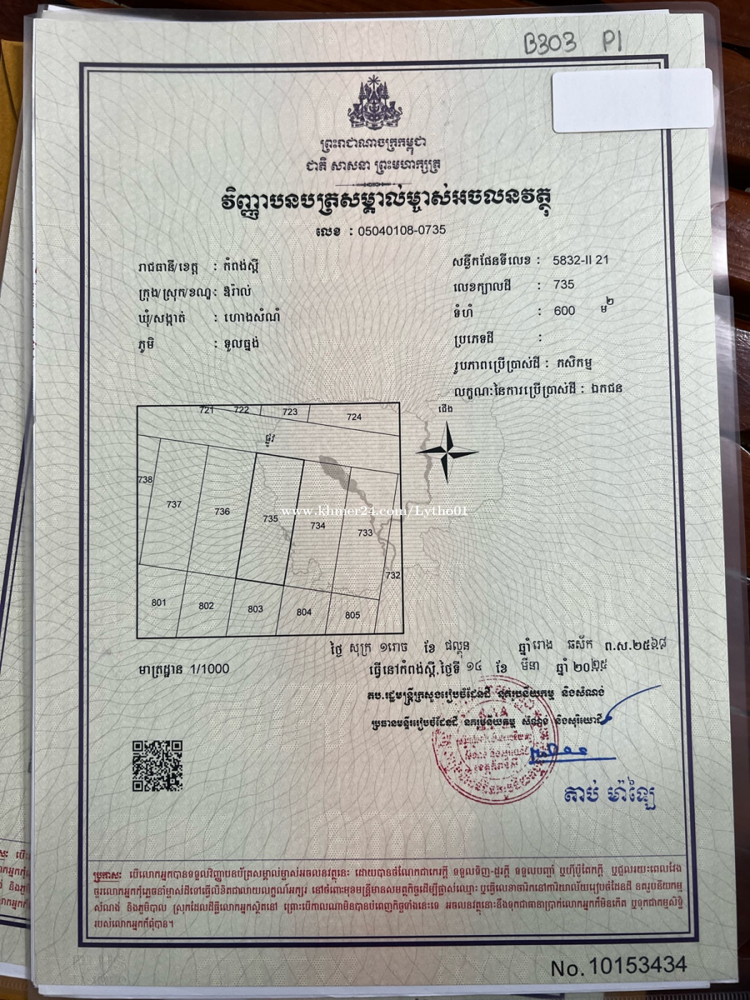 ដីចំកាលំហែរ15x40 លក់លៃឡុង មានដើមស្វាយធំៗស្រាប់ ផ្លូវ12ម ទីតាំ ចុះពីផ្លូវ44 ចូលតាមច្បារមន កំពង់ស្ពឺ ចំកាលំហែលសមស័ក្ខ 070235xxxClick To Call