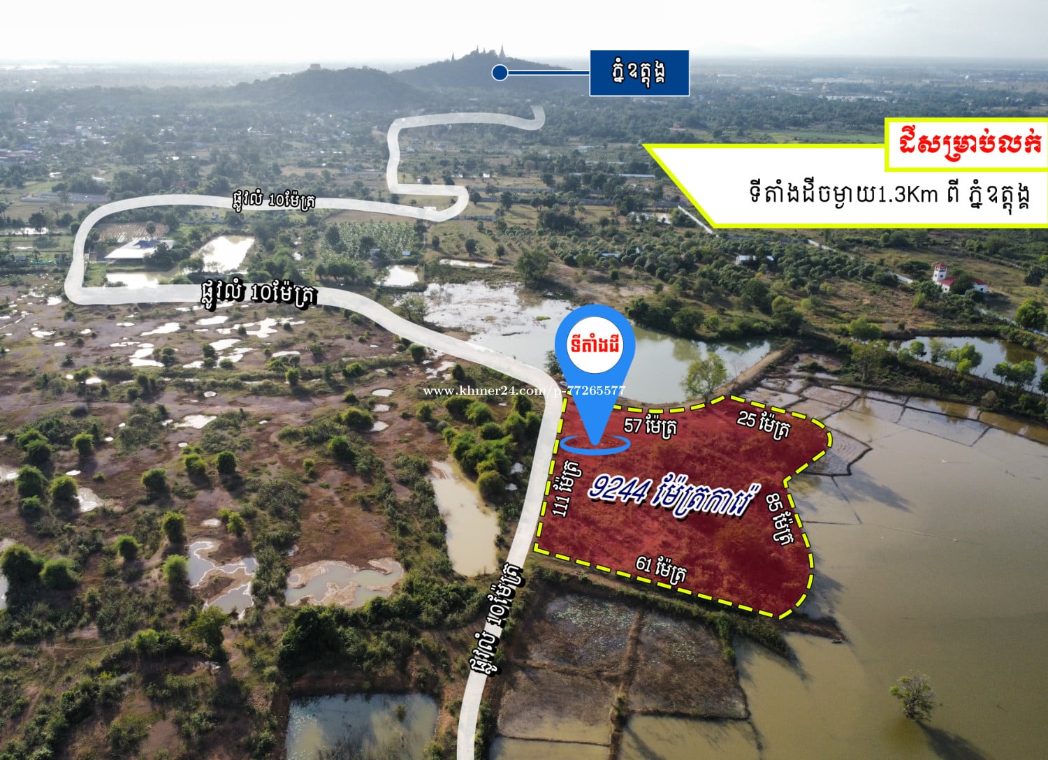 ដីសម្រាប់លក់ #ភ្នំឧត្តុង #ស្រុកពញាឮ #ខេត្តកណ្តាល 👉 ទីតាំងមានទេសភាពស្អាត អាចសង់ជាផ្ទះលំហែ រឺចំការបាន៖ 🚩 តម្លៃត្រឹមតែ $25 ក្នុង០១ម៉ែត្រការ៉េ (ចរចា+កាត់ប្លង់រឹងជូន) 🚩ទីតាំងភូមិជ័យឧត្តម ឃុំផ្សាដែក ស្រុកពញាឮ ខេត្តកណ្តាល។ 👉 ទំហំដី:111m x 85m (ទំហំក្នុងប្លង់ 9244m2) 👉អាចវិនិយោគទុកចំណេញ 👉មានផ្លូវមុខដី10m 👉ចម្ងាយពីភ្នំឧត្តុង 1.3km សំរាប់ព័ត៌មានលម្អិតសូមទំនាក់ទំនងមកទូរស័ព្ទលេខ ☎️Telegram 016369xxxClick To Call / 077265xxxClick To Call / 0978999xxxClick To Call