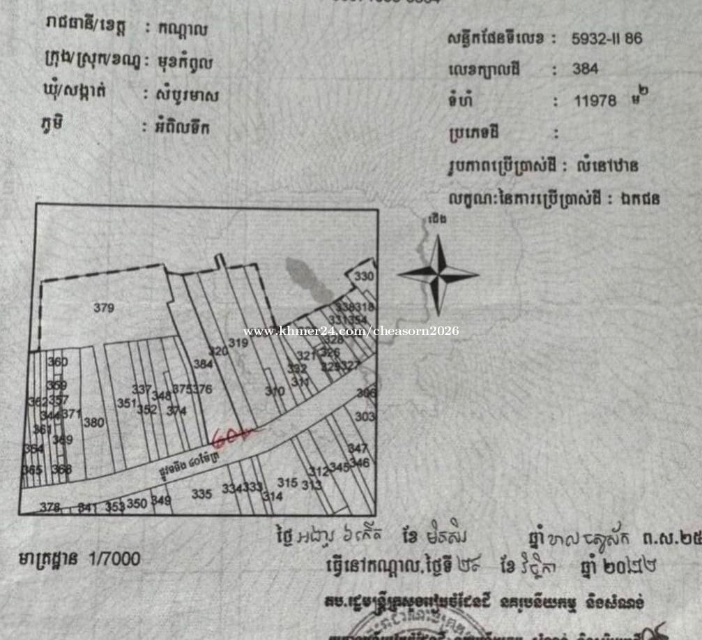 📣ដីដាក់លក់ #ជាប់ផ្លូវលេខ261(40m) » តម្លៃ $50/m2 (ចរចា) » ទំហំដីសរុប 11978m2 (ក្បាលដី60m) » ប្រភេទកម្មសិទ្ធិ ប្លង់រឹង ⛳️ទីតាំងដីនៅភូមិអំពិលទឹក ឃុំសំបួរមាស ស្រុកមុខកំពូល ខេត្តកណ្តាល ។ ☎️012587xxxClick To Call/016333xxxClick To Call