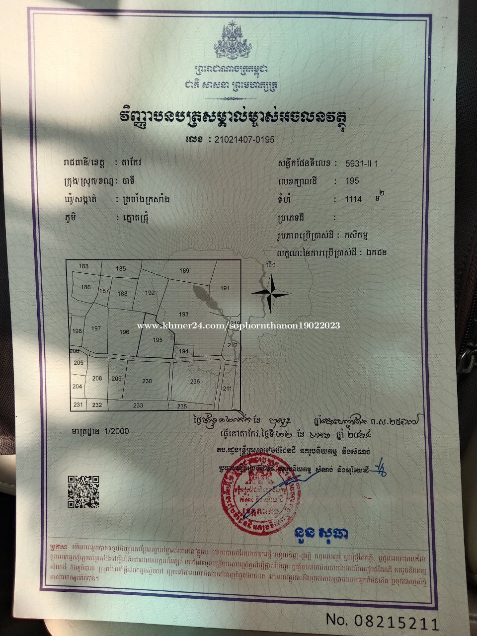 មានប្លង់រឹងដីកសិកម្ម ប៉ុន្តែមានផ្ទះប្រជាជននៅច្រើនកុះករ មានរោងចក្រ ទិញទុកធ្វើផ្ទះរឺក៏ ទុកលក់យកចំនេញក៏បាន ខ្ញុំម្ចាស់ដីផ្ទាល់ អាចឆាតមកលេខខ្ញុំ 070959xxxClick To Call