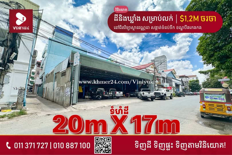 🏡ដីនិងឃ្លាំង សម្រាប់លក់!! 📍ទីតាំង ៖ នៅជិតវិទ្យាស្ថានវណ្ណដា សង្កាត់ទំនប់ទឹក ខណ្ឌបឹងកេងកង រាជធានីភ្នំពេញ - តម្លៃលក់ $1,2M ចរចា - ទំហំដី: 20m x 17m - ប្លង់រឹង - មានចំណូលជួលប្រចាំខែ - លេខអាជ្ញាប័ណ្ណ : E-22-404