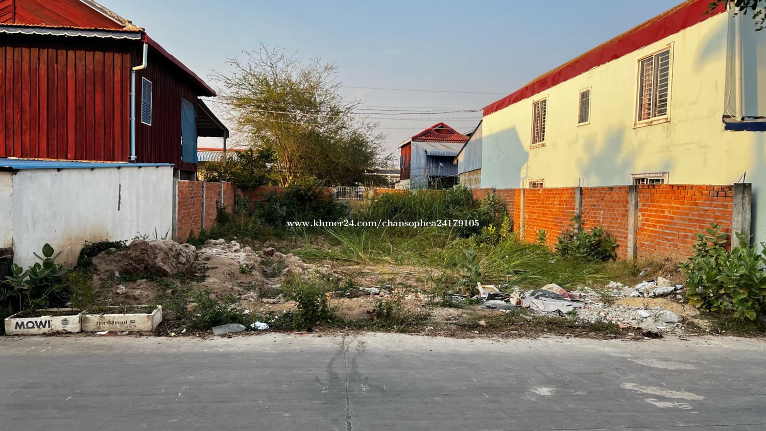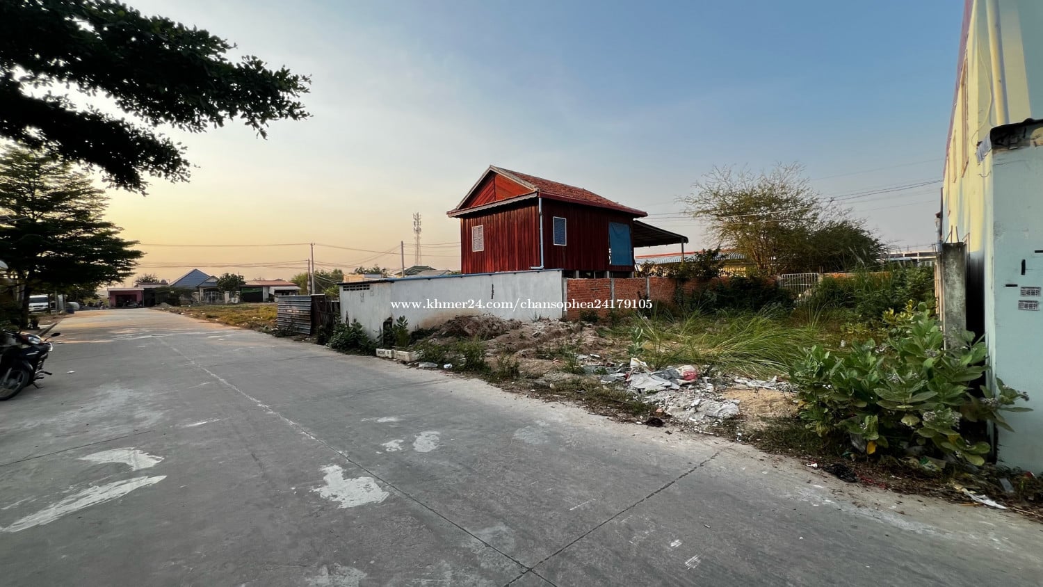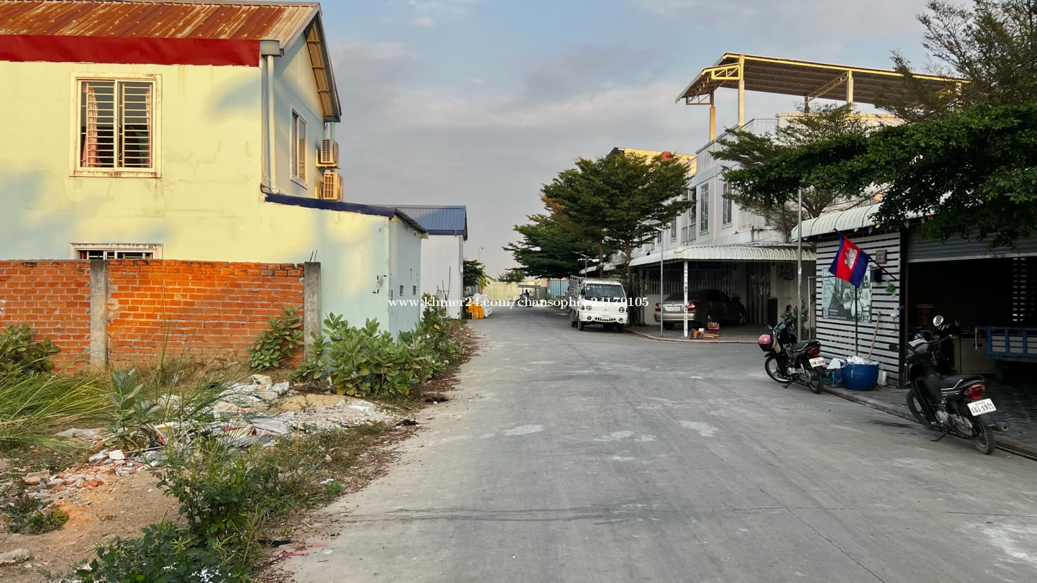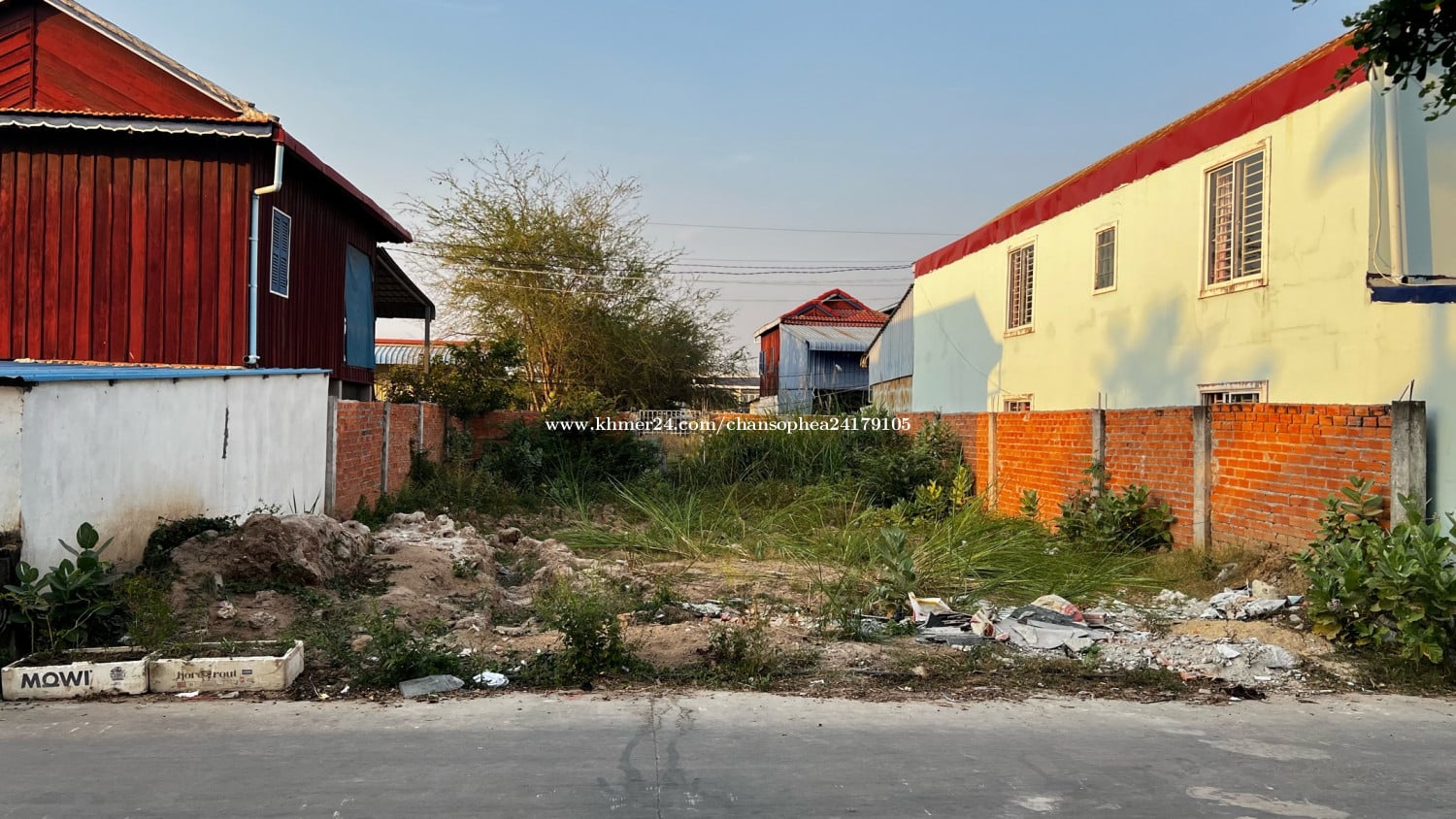 ដីលក់ទីតាំងល្អ មានផ្ទះអមសងខាង អាចបេីកលក់ដូរបាន អាចឆ្វេីផ្ទះជួលបាន
