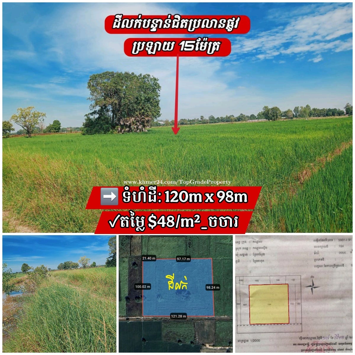 📣 ដីនៅជិតប្រលានយន្តហោះថ្មីលើផ្លូវប្រឡាយ15ម៉ែត្រ 💯 #ដីលក់ក្រោមហាងឆេងទីផ្សារ 100% ✔️ ទីតាំងដីមុខជាប់នឹងផ្លូវប្រឡាយ15ម៉ែត្រ_មាចំងាយត្រឹមតែ1km ពីប្រលានយន្តហោះថ្មី។ ✓ ទីតាំងដីលក់ដែលស្ថិតនៅឃុំ_ព្រែកស្លែង_ស្រុកកណ្ដាលស្ទឹង_ខេត្តកណ្ដាល ➡️ ទំហំដី: 120m x 98m ✓តម្លៃ $48/m²_ចចារ ____ ទំនាក់ទំនងអ្នកលក់ 📥 ពិភាក្សាយោបល់: https://t.me/Sambo_At • 092262xxxClick To Call • 098827xxxClick To Call • 0712022xxxClick To Call 🌐 ដី/ផ្ទះទីតាំងល្អៗ: https://t.me/topgradeproperty