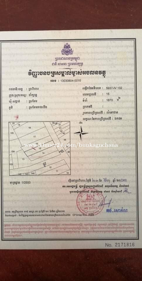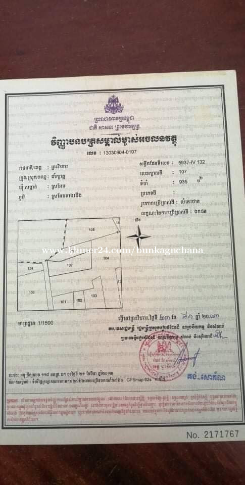 ដីនៅព្រះវិហារ ប្លង់រឹង ២ប្លង់លក់តែ$10000ឡៃឡុង លេខទំនាក់ទំនង 093878xxxClick To Call